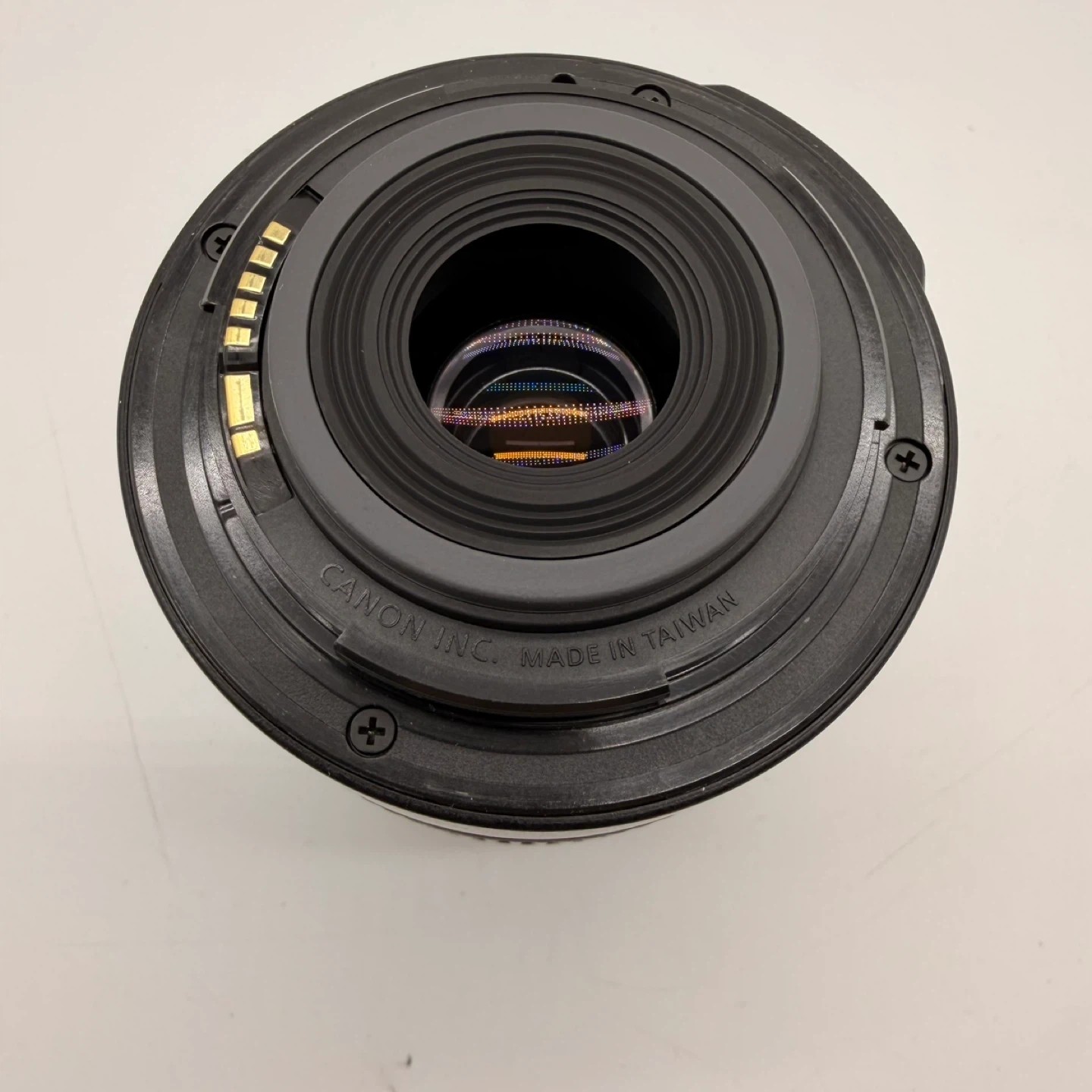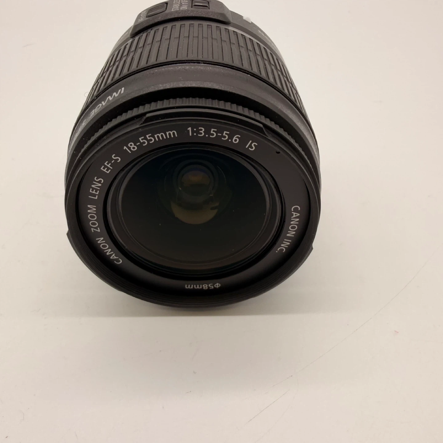Canon EF-S 18-55mm f/3.5-5.6 IS zoom lens, made in Taiwan.