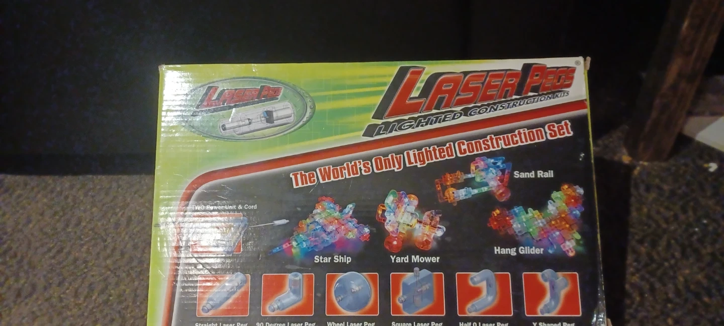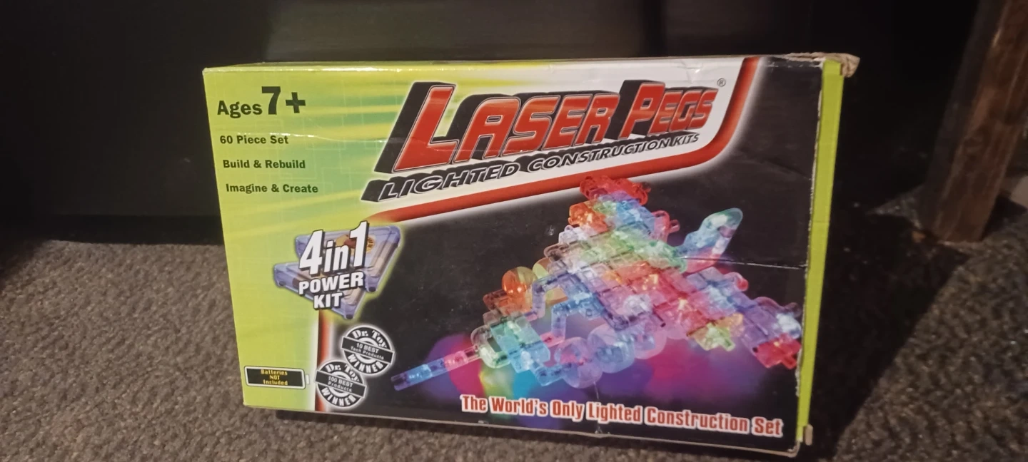Get ready to light up playtime with this Laser Pegs lighted construction set! This set appears to be in good condition and includes a variety of colourful, lighted pieces that can be used to build different models. It's a fantastic way to spark creativity and keep kids entertained. The box shows some wear.