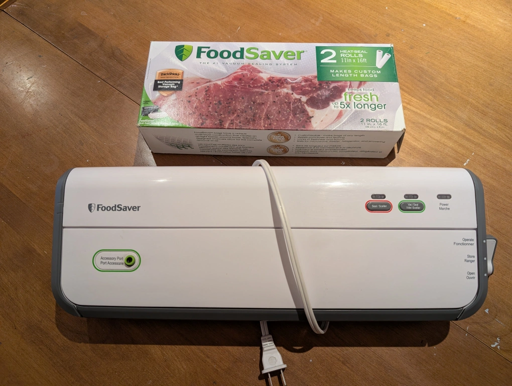 Selling a FoodSaver vacuum sealing system. It comes with 2 heat-seal rolls (11in x 16ft) to make custom length bags. Keeps food fresh up to 5x longer!