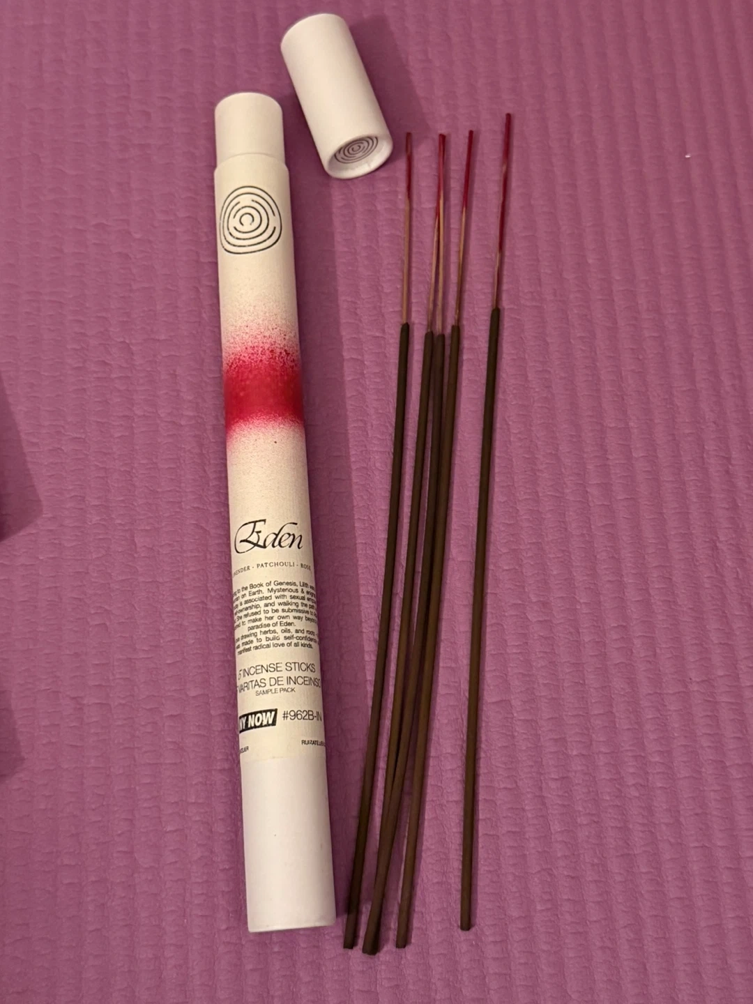 Eden Incense Sticks in Patchouli & Cedar scent. This set includes multiple incense sticks. For use with incense holders.