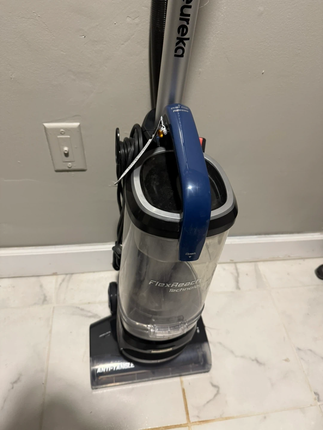 Selling a Eureka FlexReach Technology vacuum. It's in good condition and ready to help keep your home clean! The vacuum features anti-tangle technology.