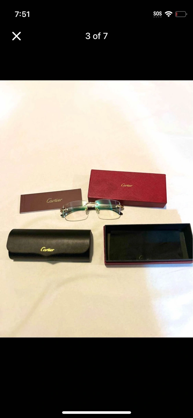 Pre-owned Cartier glasses. Includes case and box. Made in France. Excellent condition. The price is negotiable please don’t low ball