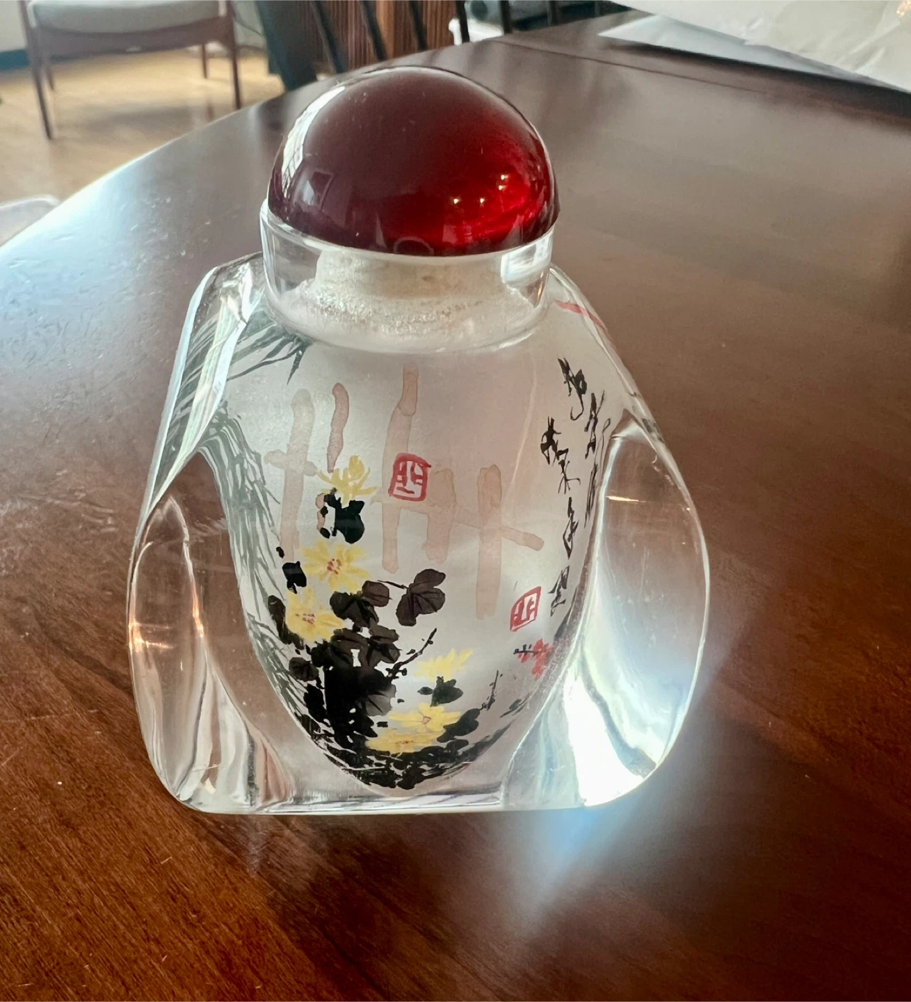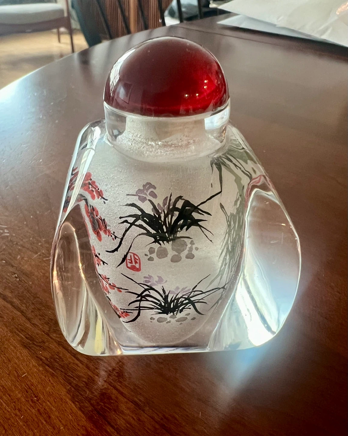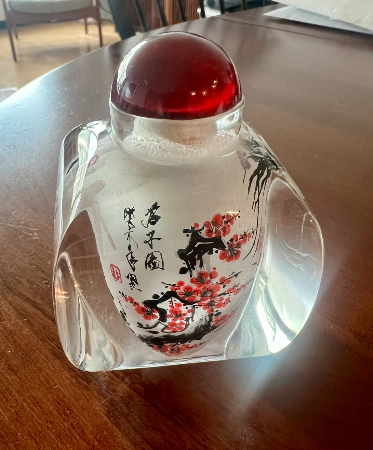 Decorative Chinese Glass Bottle with Red Stopper