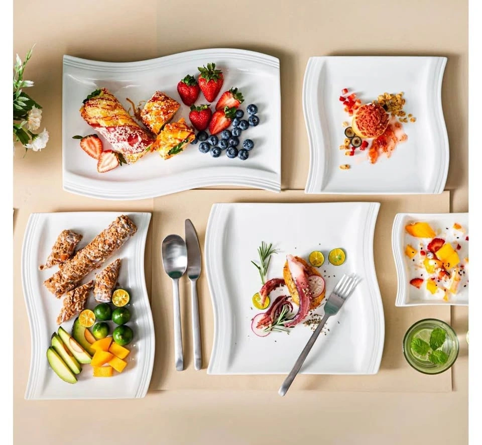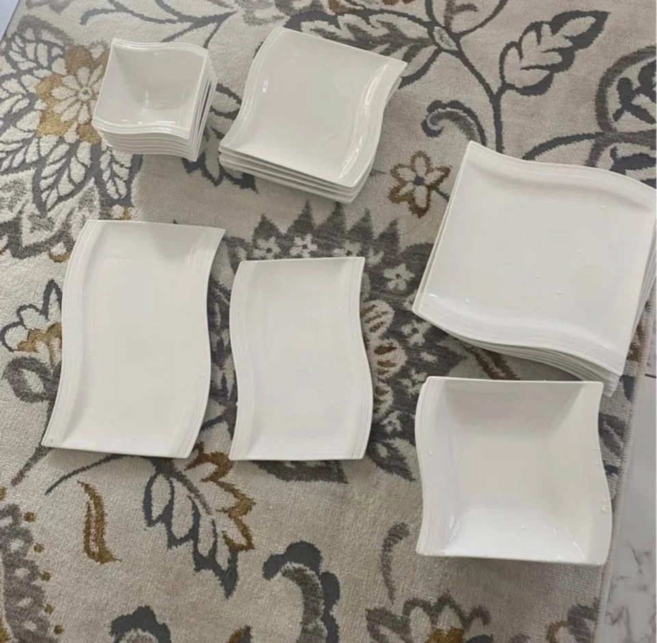 51- piece Square Porcelain Dinnerware Sets, Service for 12