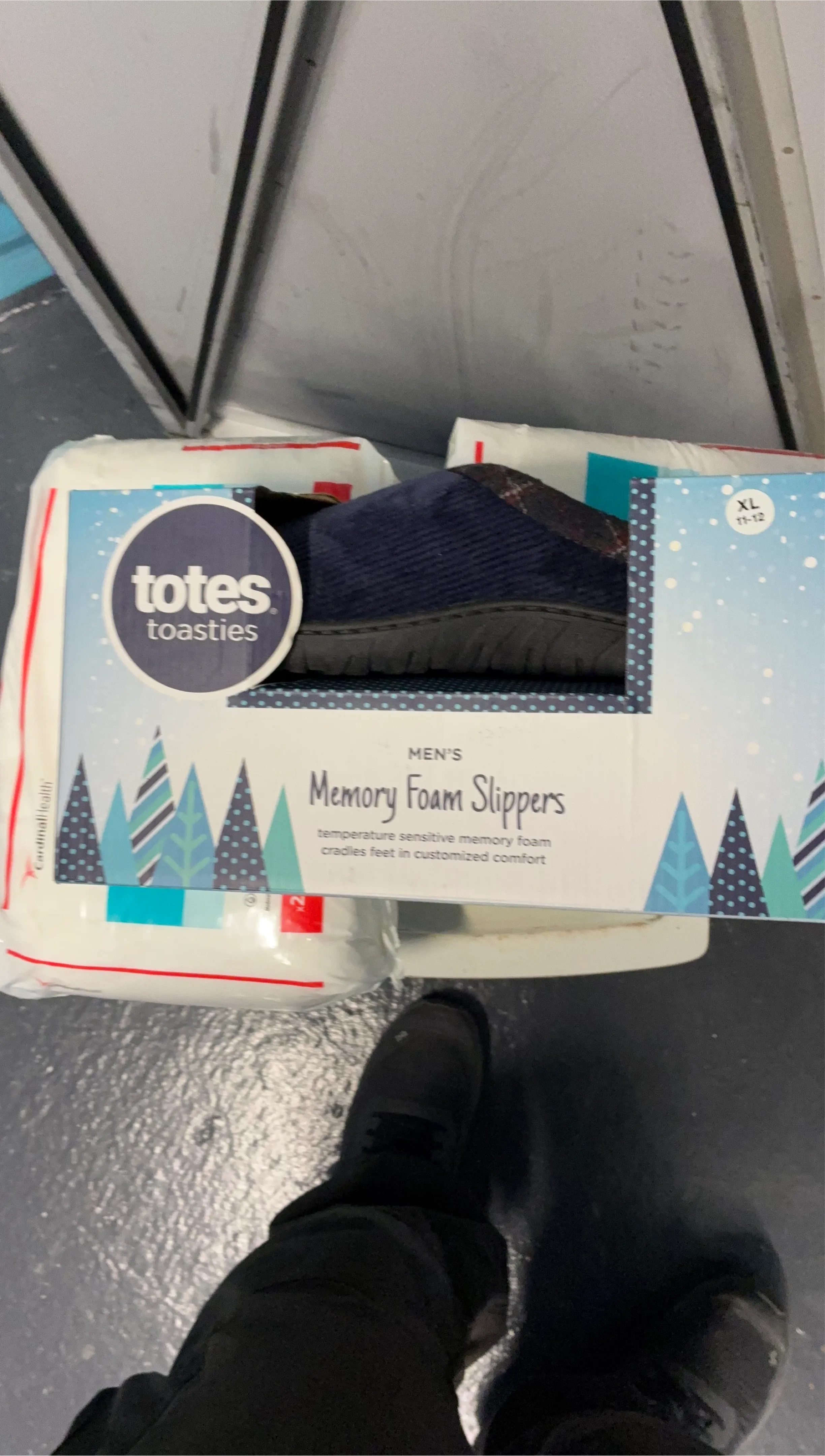 Men's memory foam slippers by Totes Toasties. Temperature sensitive memory foam cradles feet in customized comfort. Size XL (11-12).