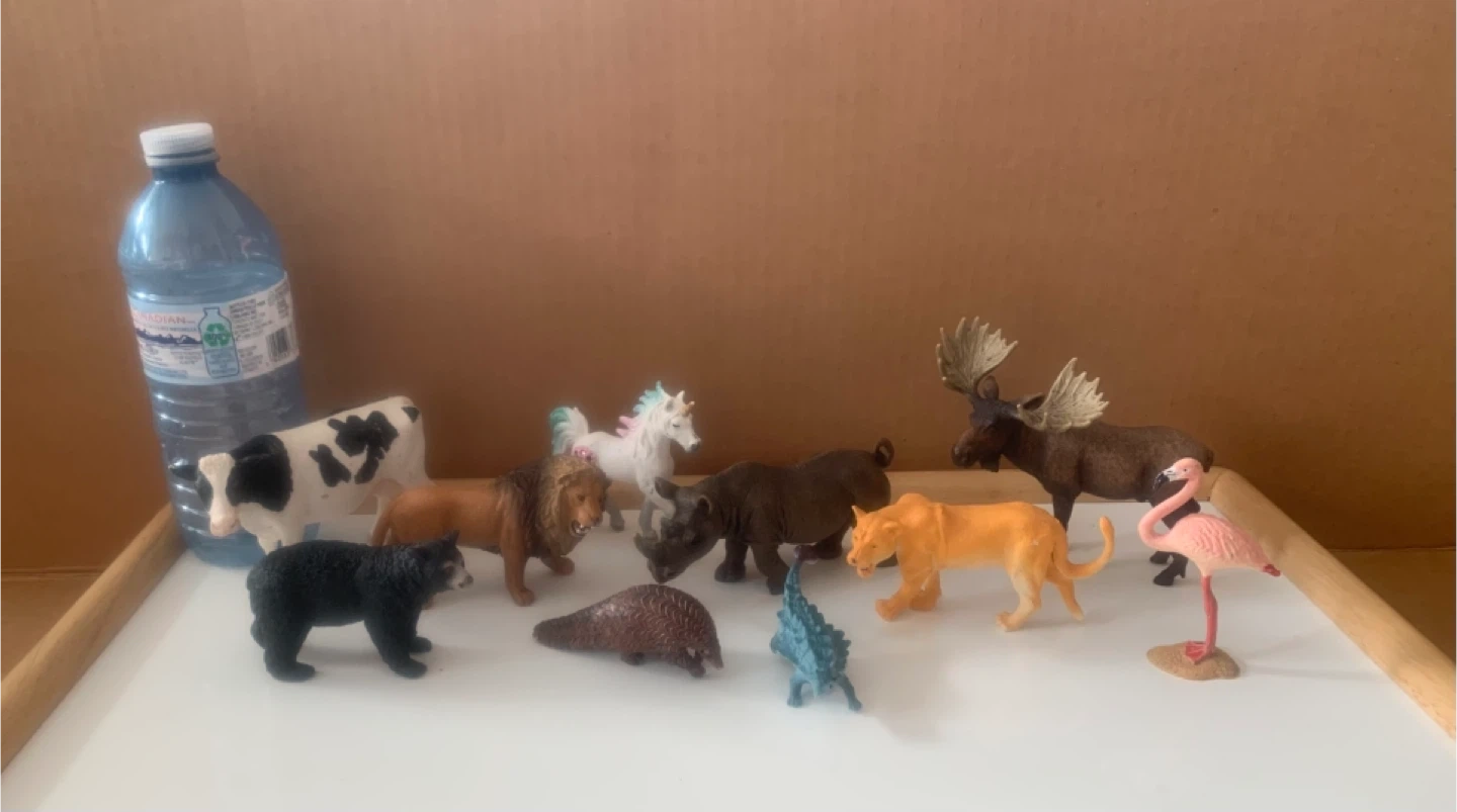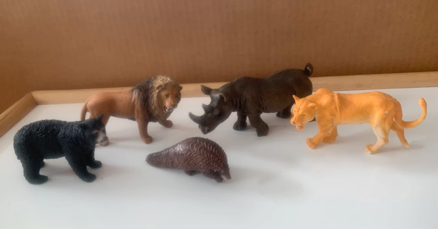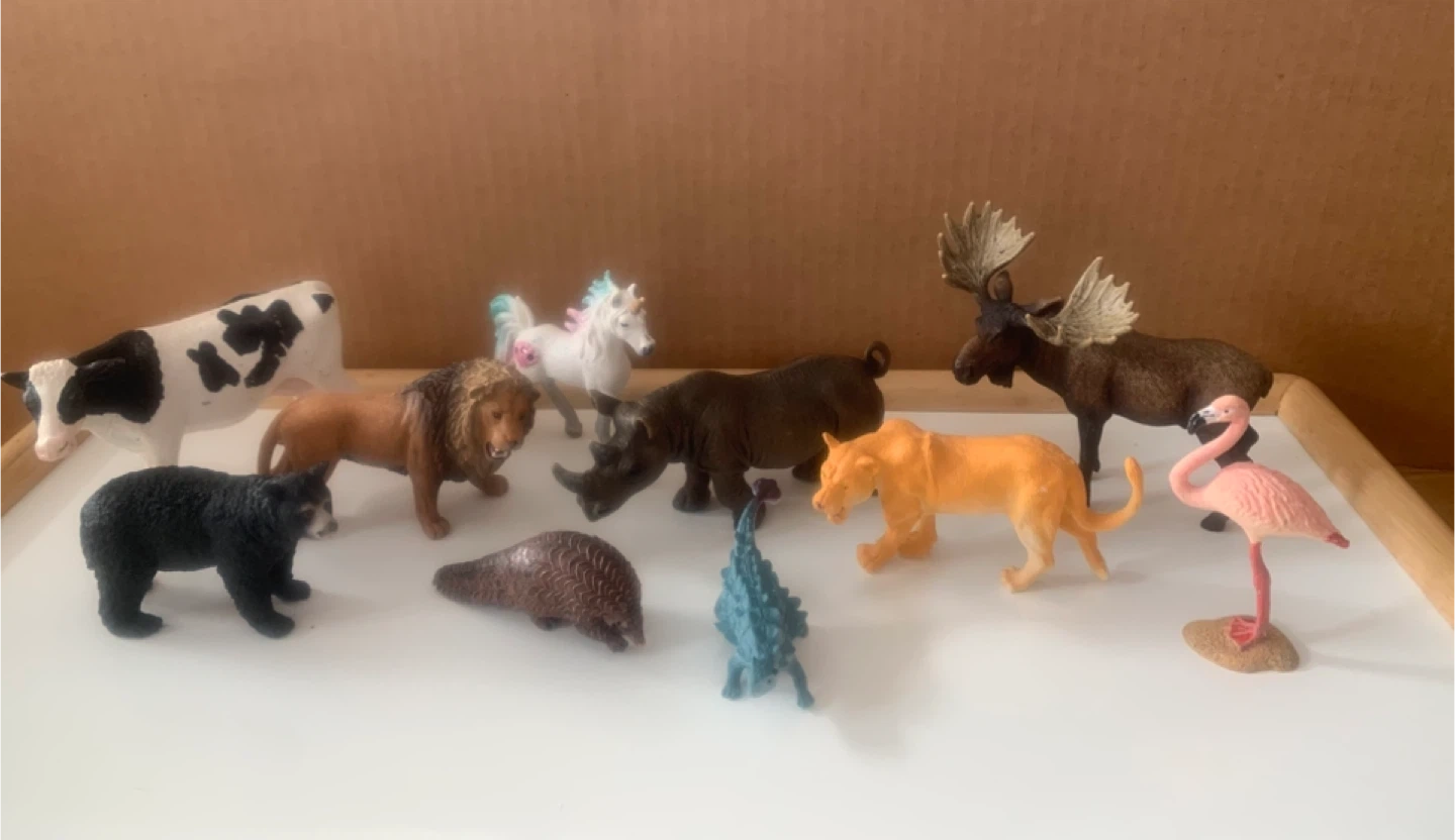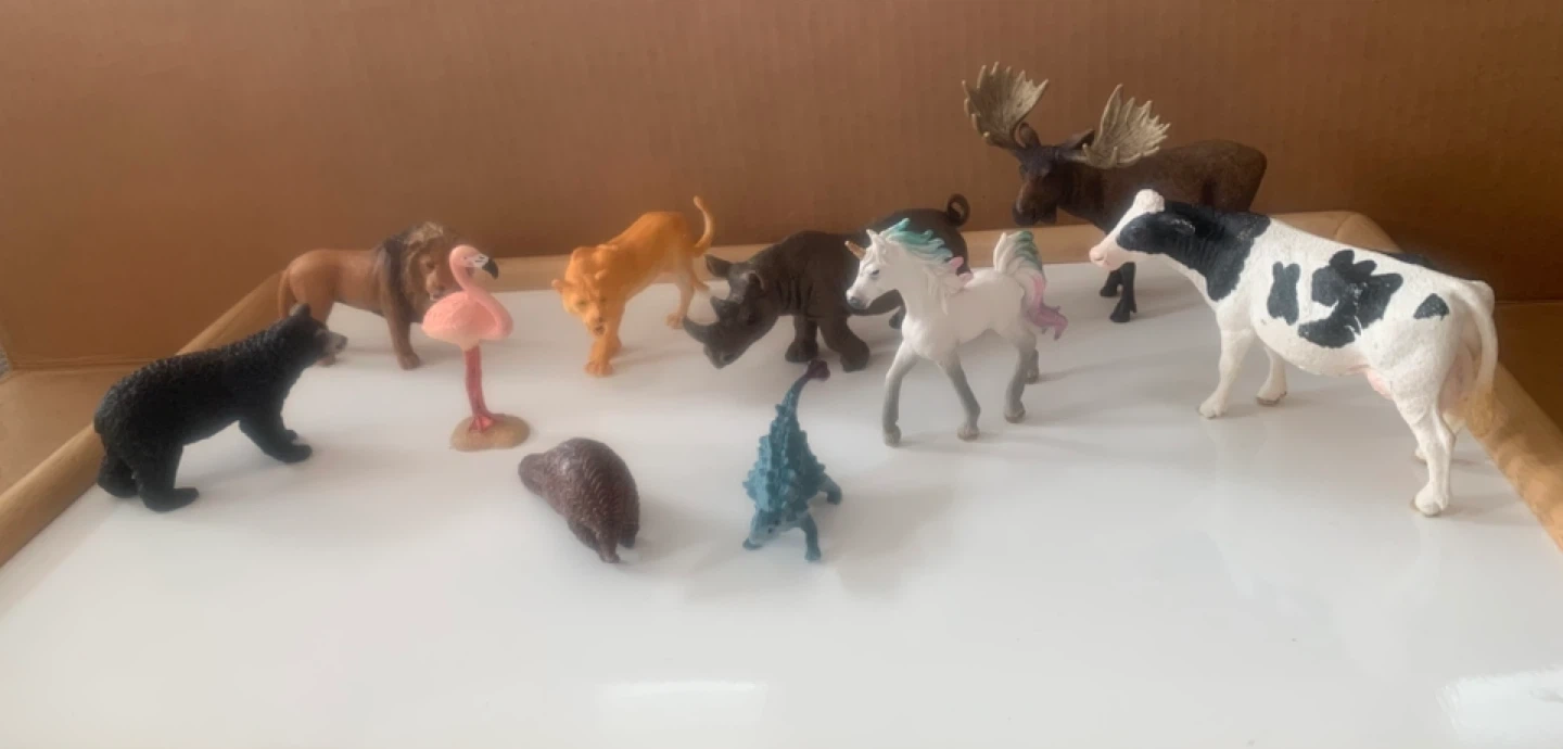Awesome collection of animal figures. Has 10 different ones like a cow, lion, unicorn, bear, rhino, moose, flamingo, cougar, etc. Super fun for kids.