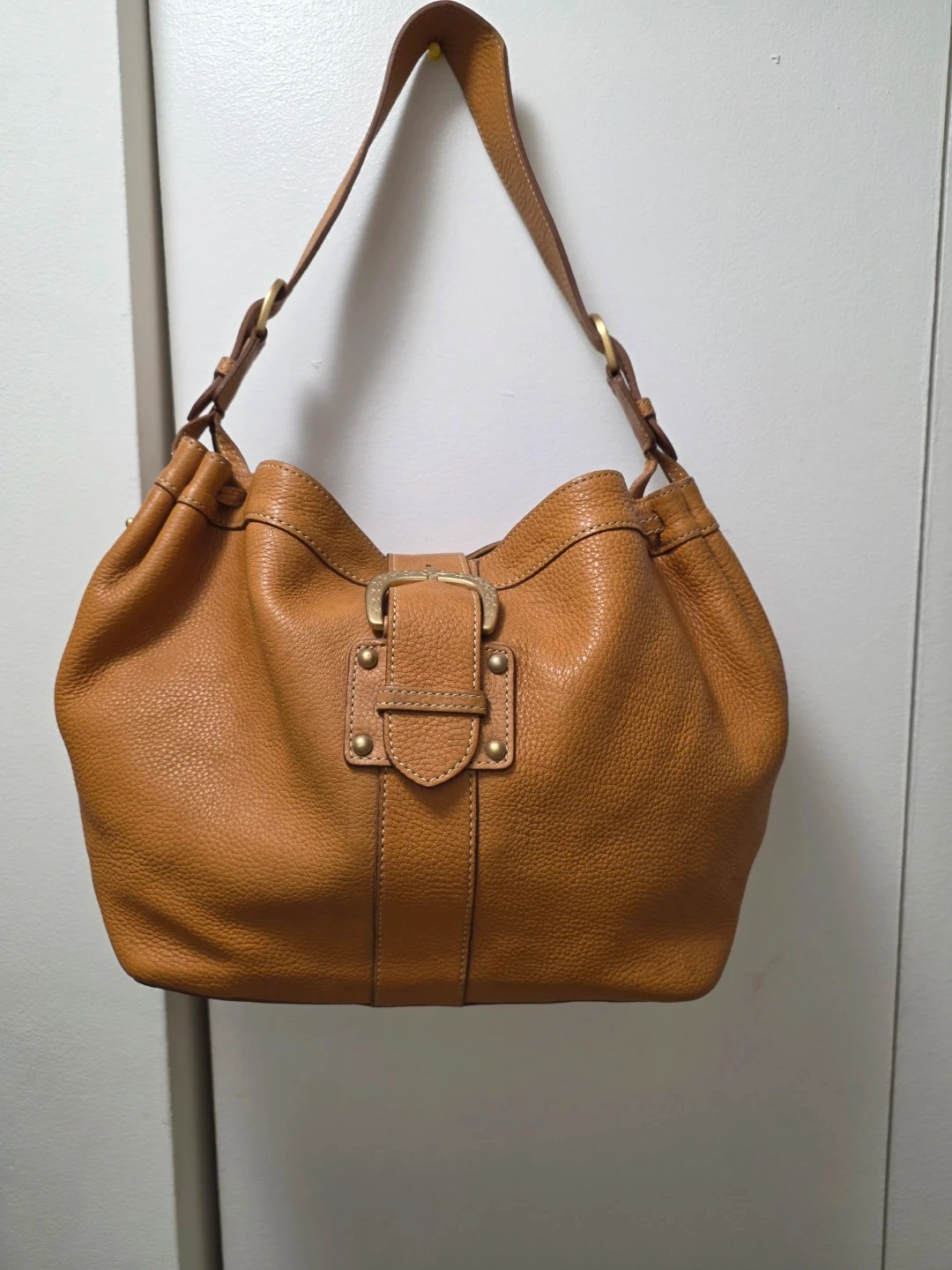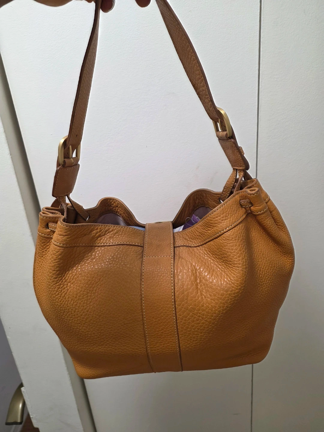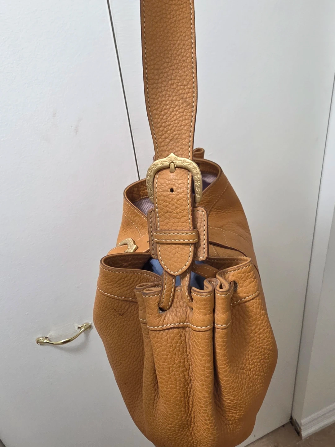 Authentic Dooney & Bourke Drawstring Leather Shoulder Bag
