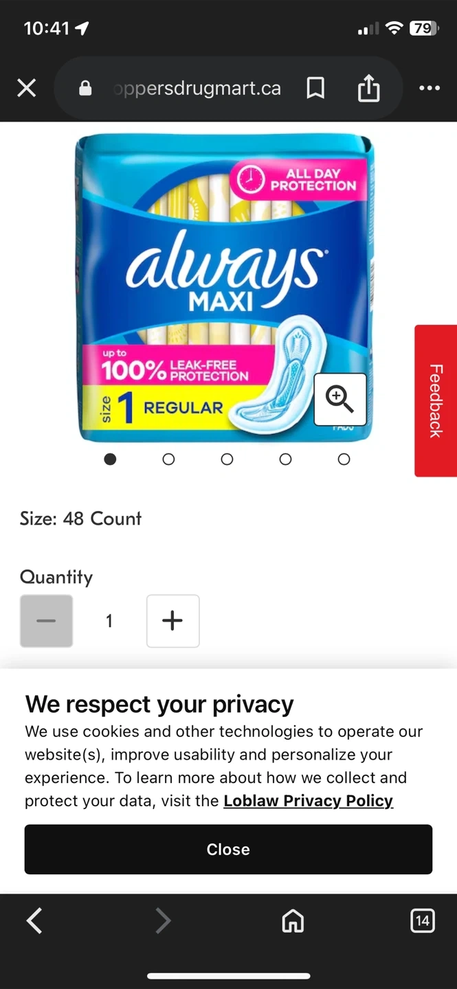 Always Maxi pads offer up to 100% leak-free protection. They are size 1 regular pads with a 48-count package. Useful for daily feminine hygiene.