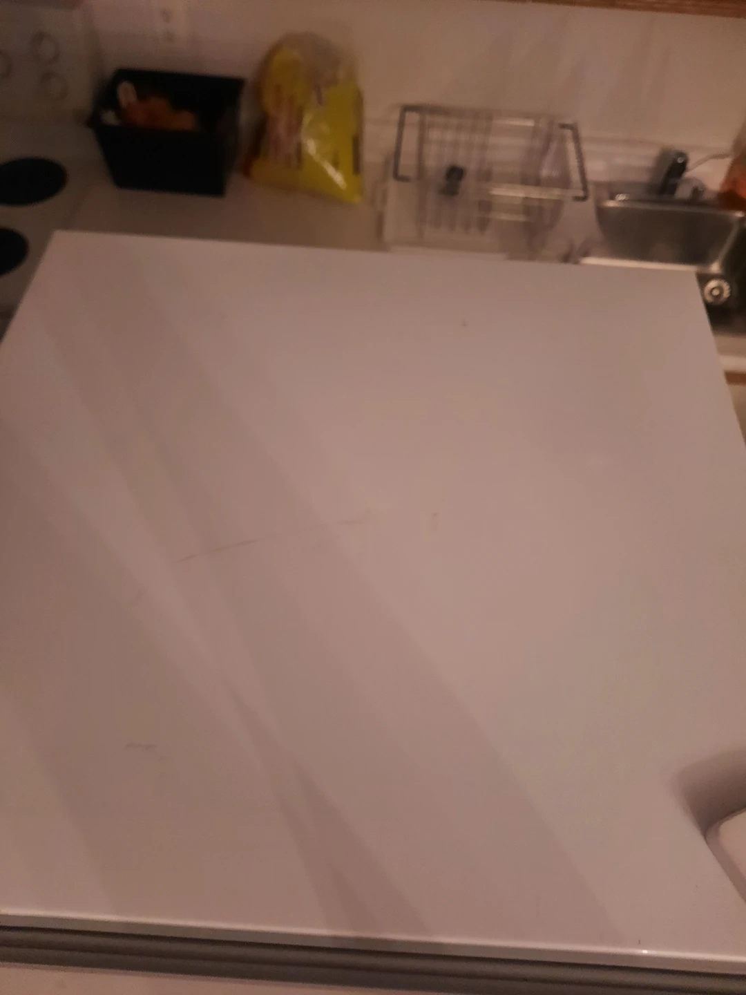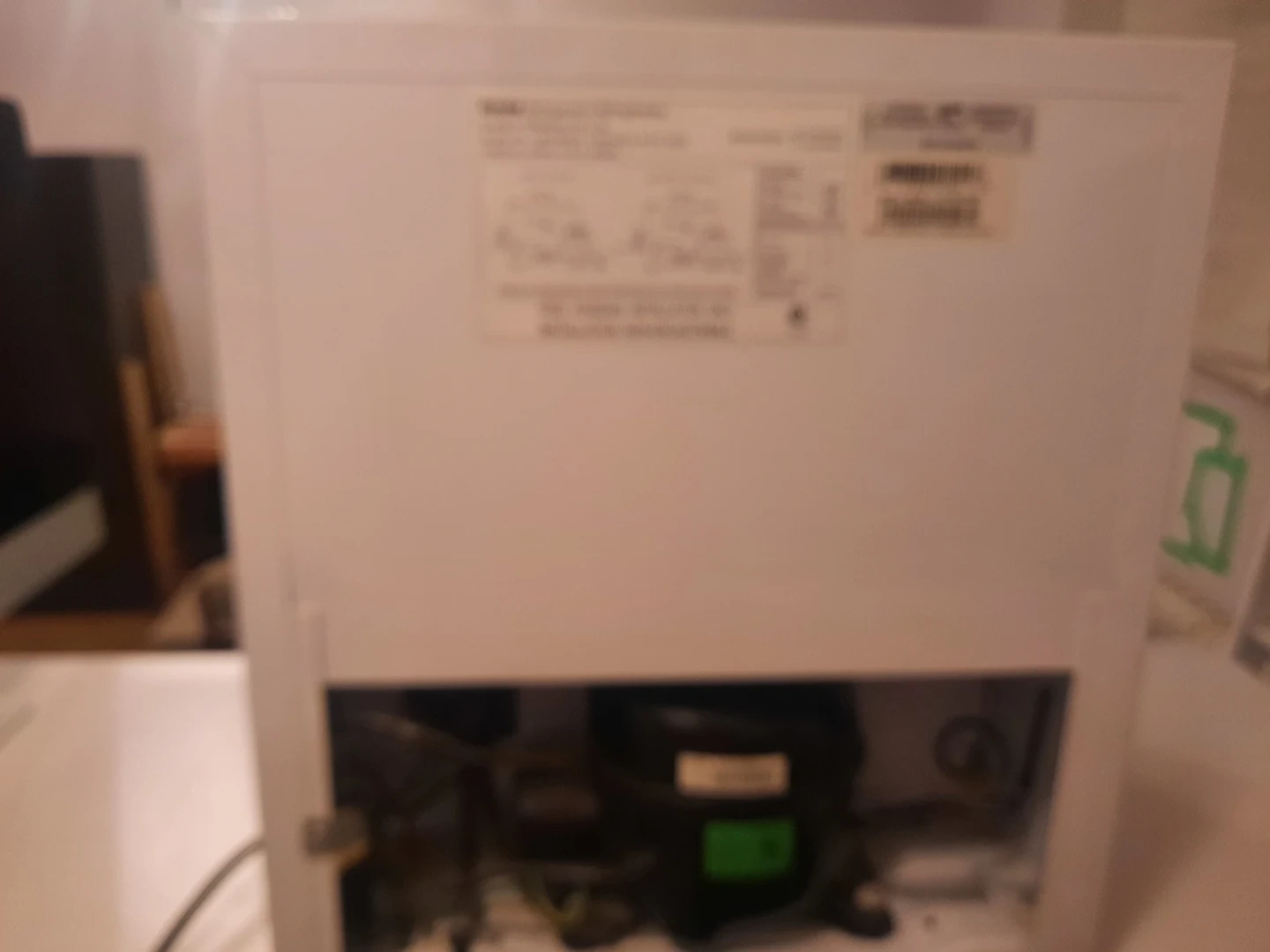 barely used, maybe for a month. Still has the new fridge smell. has a few cosmetic scratches on it from being moved around.