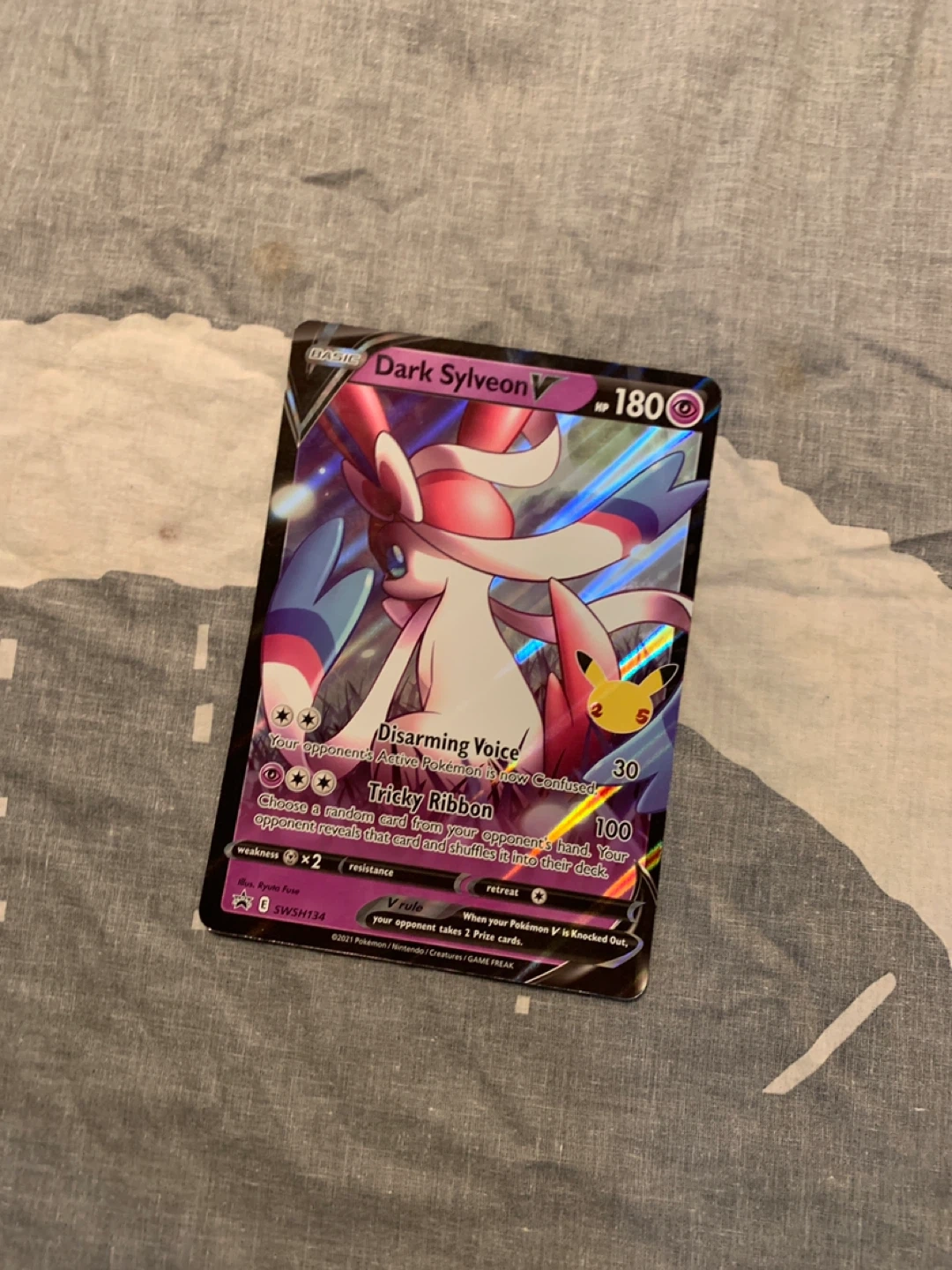 Selling a Dark Sylveon V Pokemon card. It's in great condition and ready for a new home! Feel free to reach out if you're interested