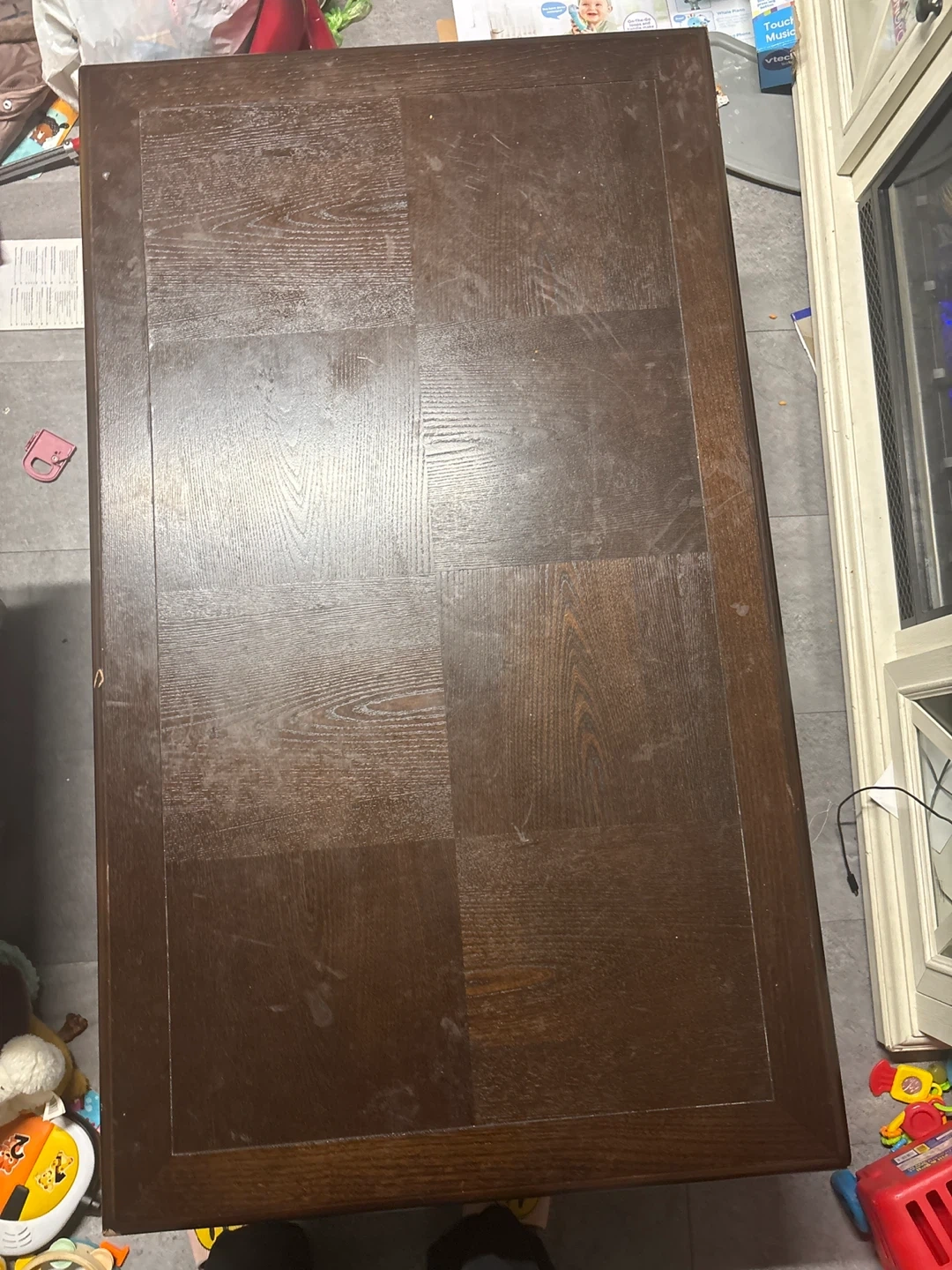 60Selling a dark wood coffee table. It has a unique lift-top design, perfect for working or eating from the couch! The top lifts up to reveal a hidden storage compartment. It's sturdy and in good condition, ready to add some style and functionality to your living room