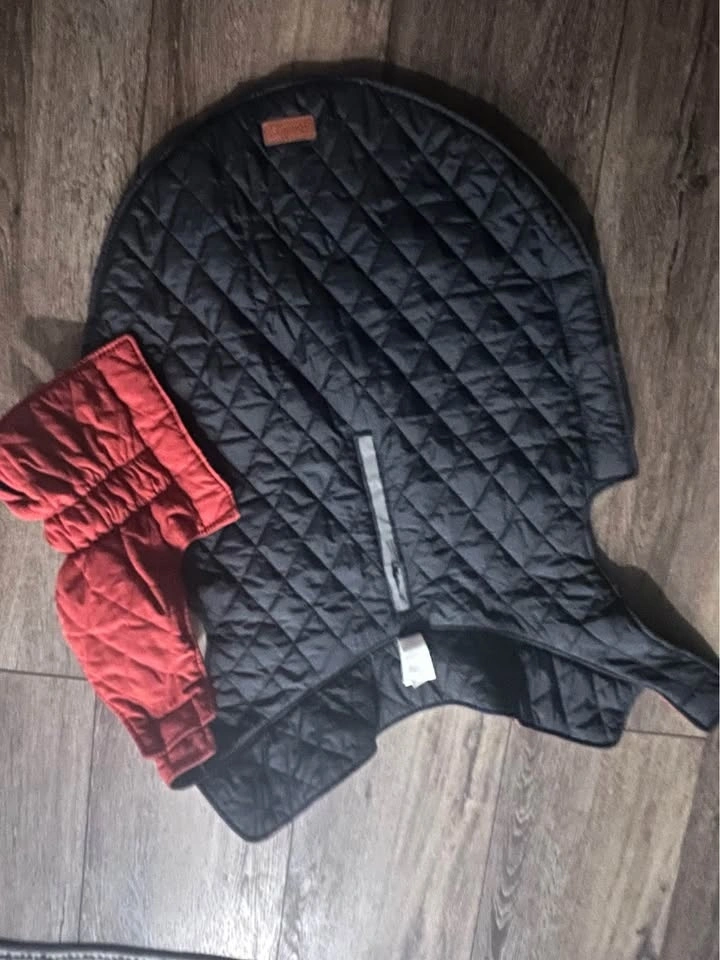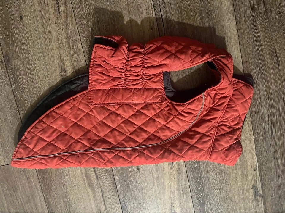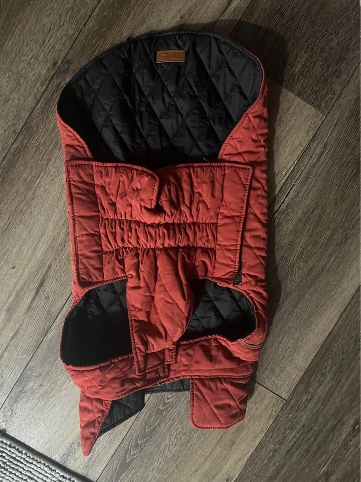 This is a reversible, thick insulated winter coat for dogs. It fits medium to large dogs and can be adjusted for a better fit. It's also machine washable. Pick up in Roselle.