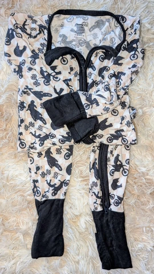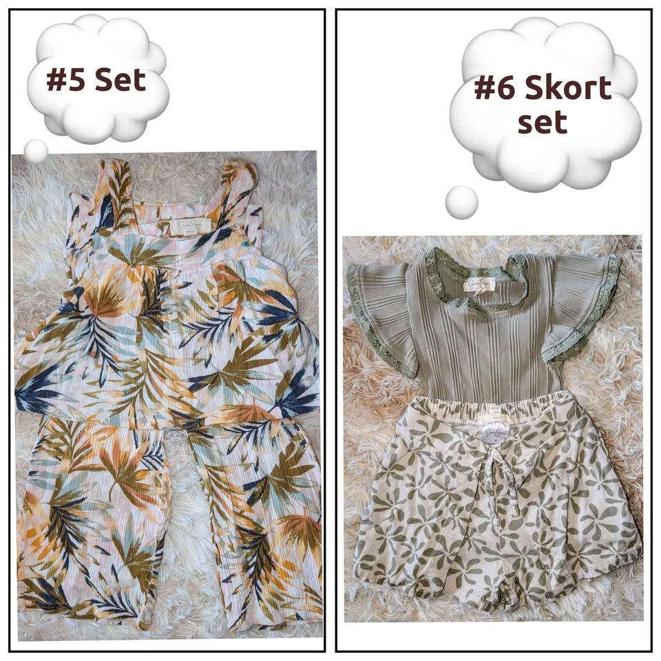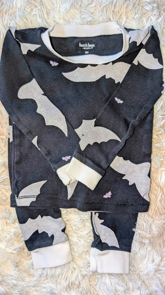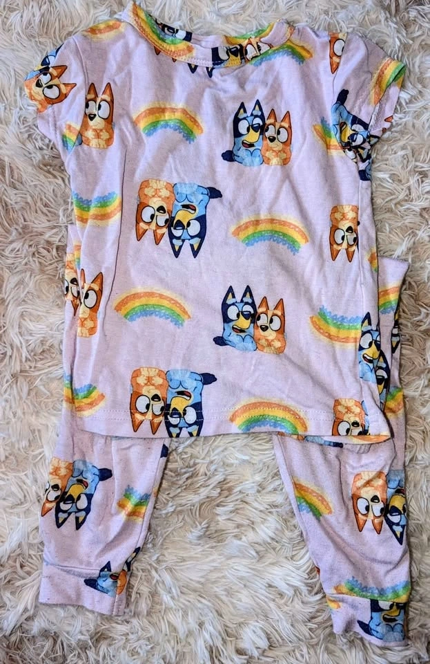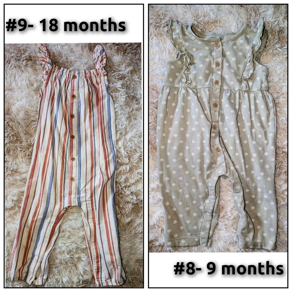 Each piece $7, or everything for $70. 1. Handmade cotton dress 12-18 months 2. PJs purchased in Italy 3T 3. Burt's Bees Halloween PJs 18months 4. Viscose Bamboo PJs Motocross 12-18 months 5. Jessica Simpson set 3T 6. Jessica Simpson skort set 3T 7. Bluey PJs 24 months 8. Carter's romper 9 months 9. Carter's romper 18 months 10. Winter set 12 months 11. Kidscool jean overall 12-18 months (one snap missing) 12. Carter's Onesie 12 months