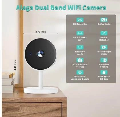 Alaga 2K Indoor Security Camera, Baby Monitor with AI Motion Detection, 2 Way Audio, and Night Vision. Compatible with Alexa and Google Assistant. Includes a 64G TF Card. Feel free to message if you have any questions!