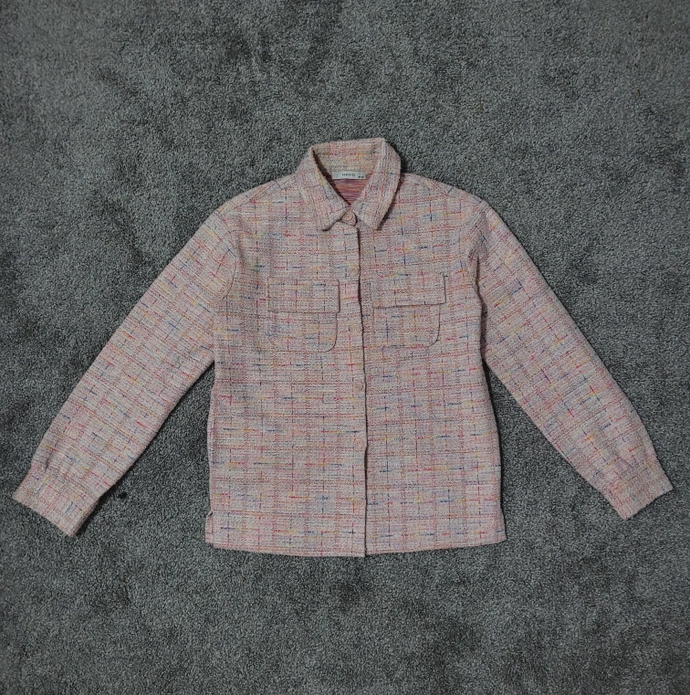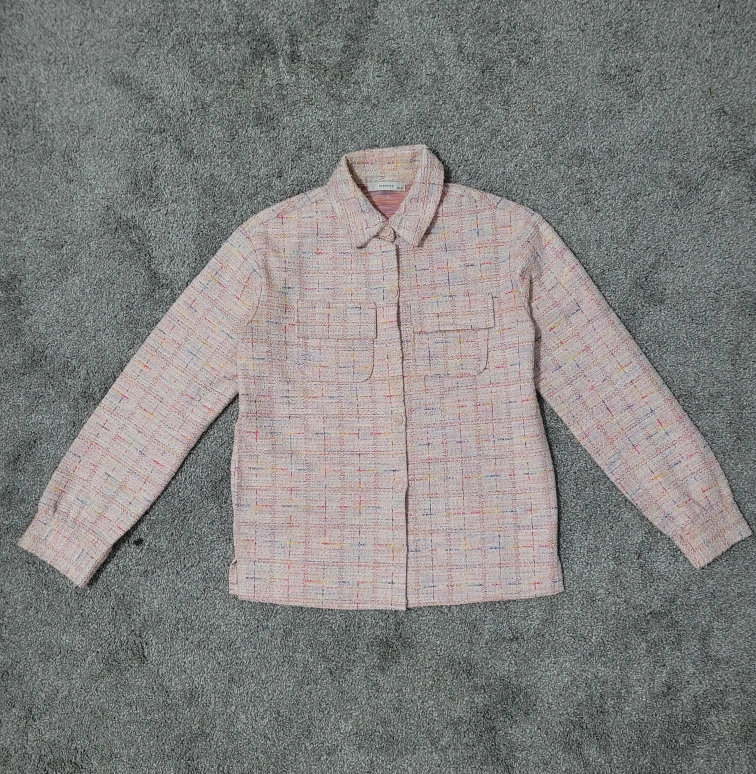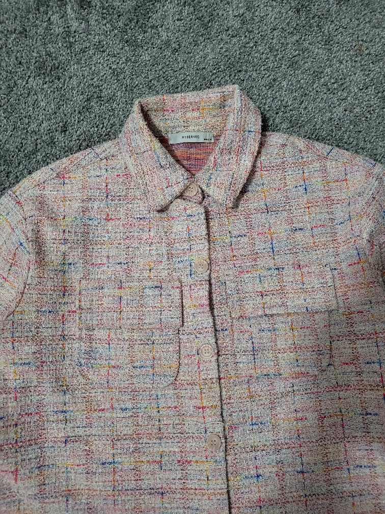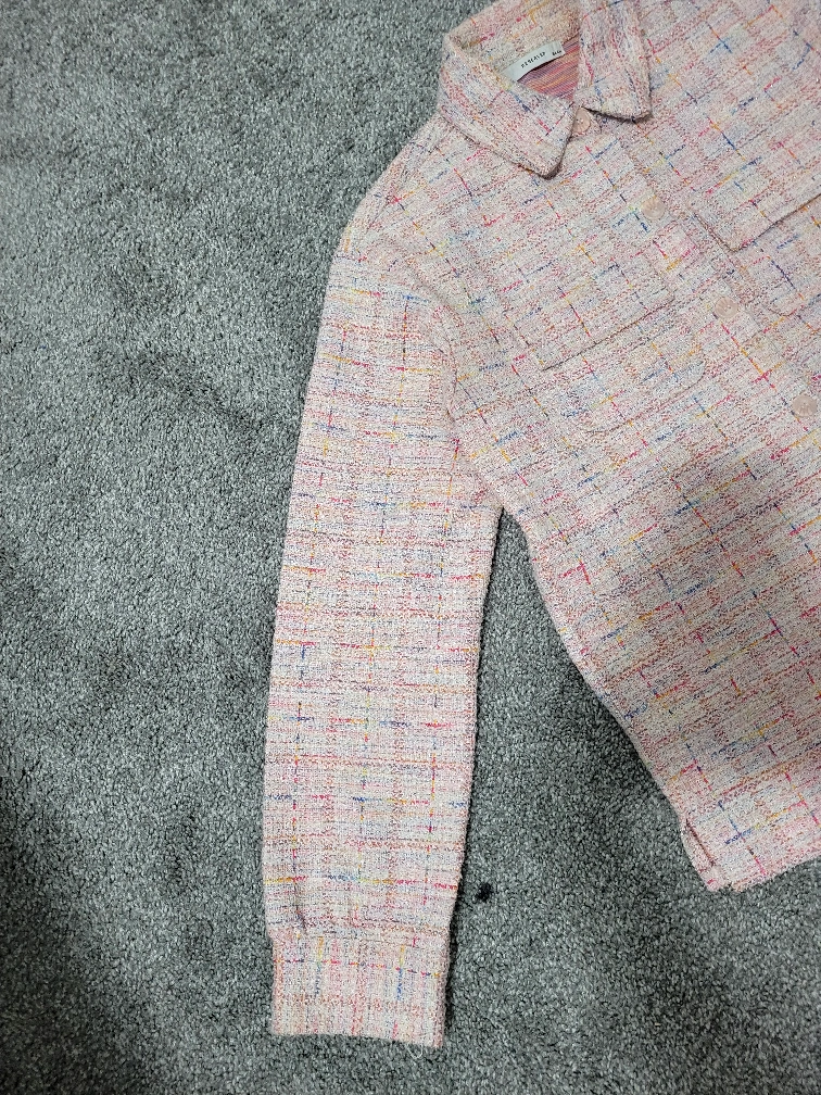 Selling a cute pink tweed button-up jacket from brand reserved