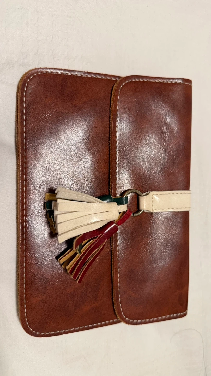 This stylish clutch wallet is made from brown faux leather and features a decorative tassel. It has multiple compartments inside for organizing your essentials. Perfect for carrying your makeup accessories, cards and cash on the go!