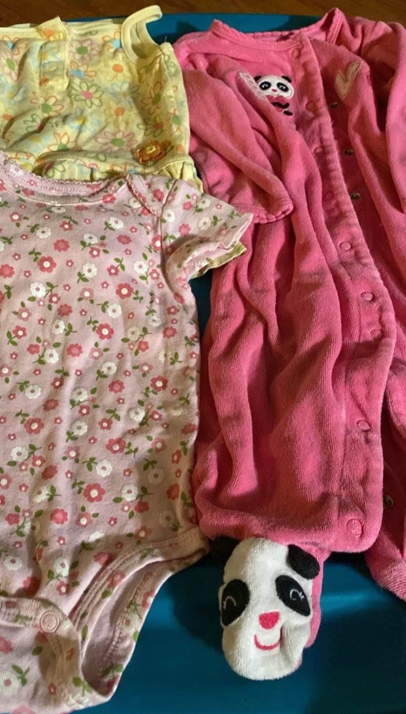 Bundle includes: one pink floral bodysuit, one yellow floral sundress, one pink panda sleepsuit. Size 9 months No delivery, holds, or refunds. Price is firm.