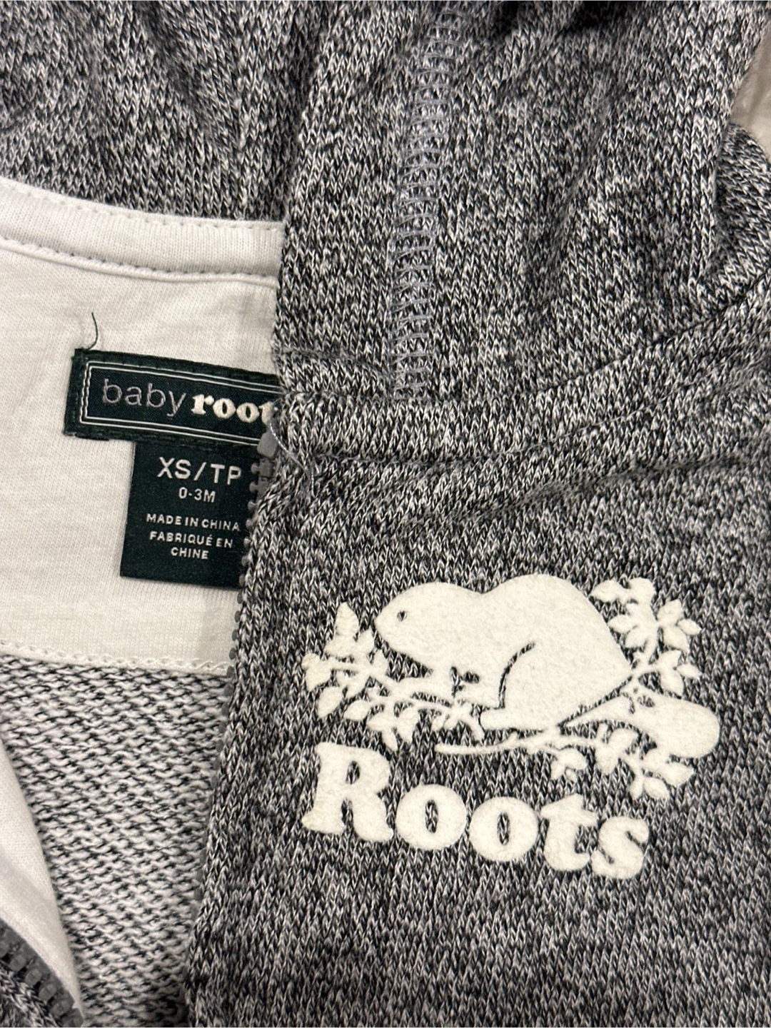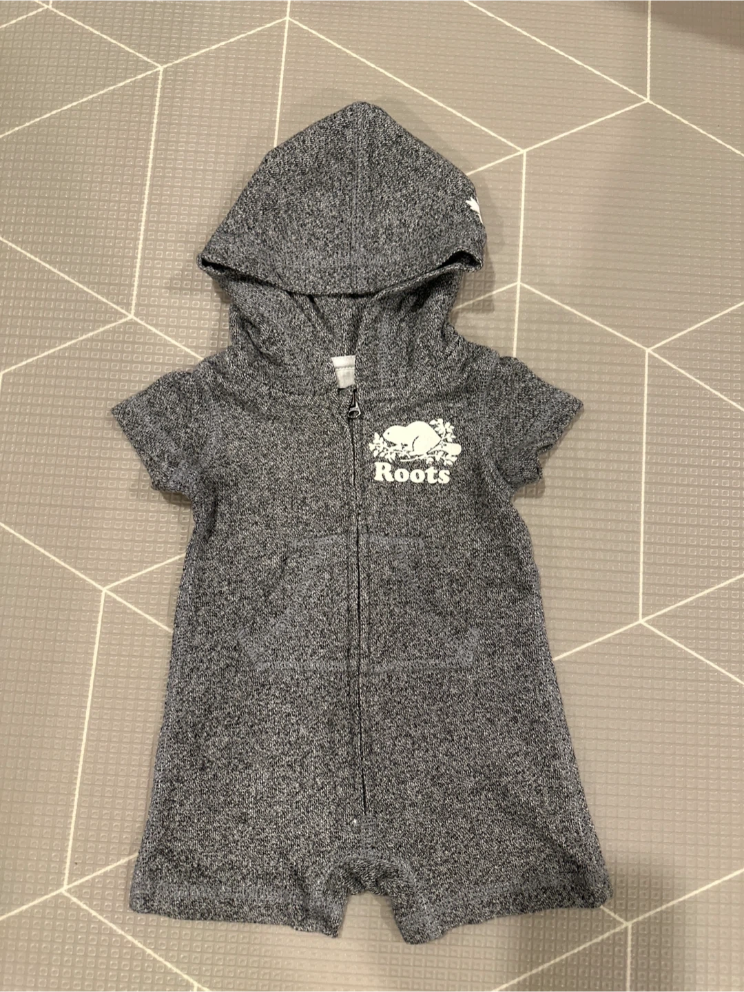 Here's a cute little salt & pepper romper from Roots for your baby! It's size 0-3 months and has a hood. Perfect for keeping your little one comfy and stylish!