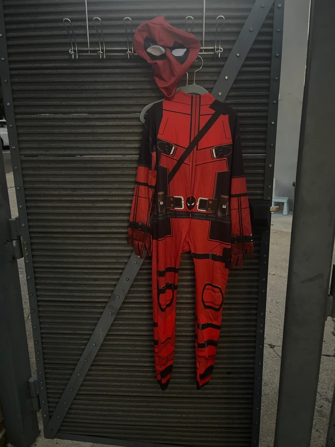 10Selling a Deadpool costume kids size. It's red and black and looks like the classic Deadpool suit. Great for cosplay or Halloween!