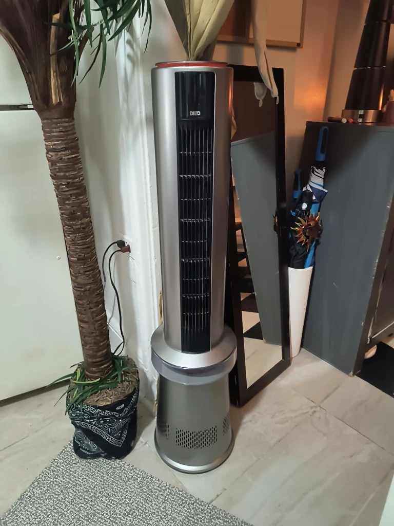 59Selling a DEKO tower fan in silver! This fan is perfect for cooling down any room and has a sleek design that will fit in with any decor