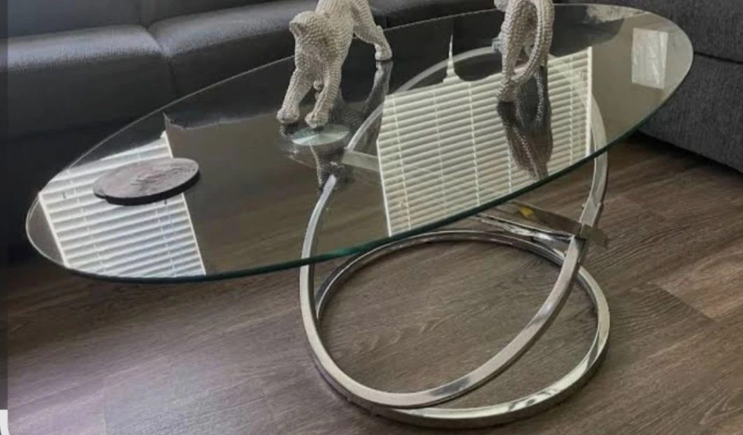 Oval Glass Top Coffee Table with Metal Base