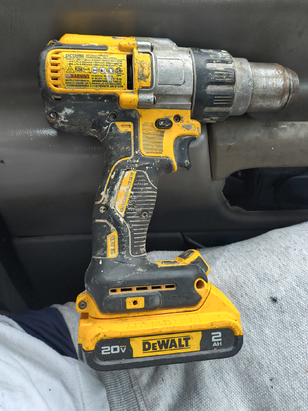 Selling a DeWalt DCD996 Hammer Drill Driver. It shows signs of wear from use. It has a 20V battery.
