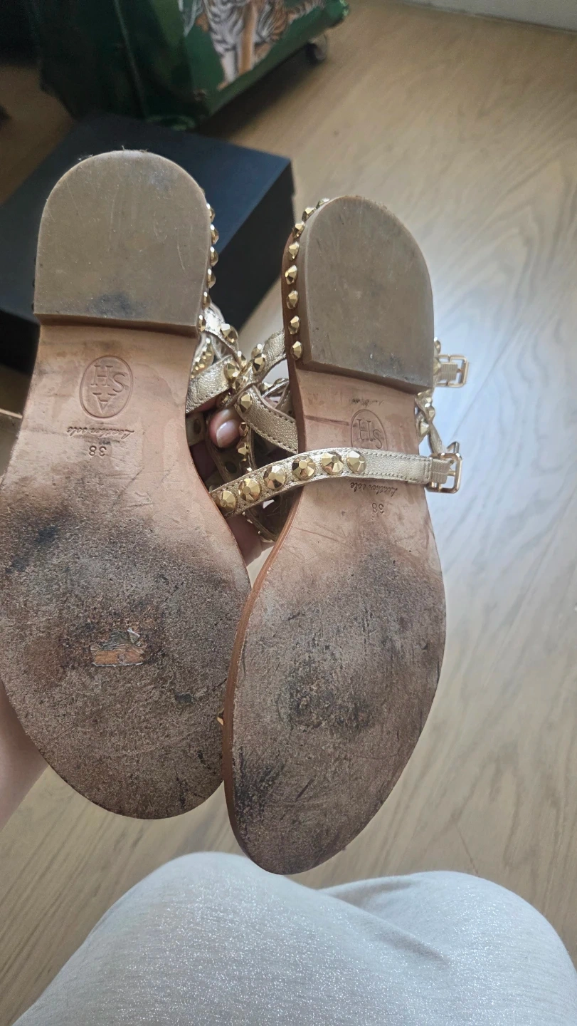 Buy & SellASH Gold Studded Gladiator Sandals Size 38ASH Gold Studded Gladiator Sandals Size 38$23Gold studded gladiator sandals by ASH. Strappy design with ankle buckles. Size 38. These sandals add a bit of edge to any outfit!ConditionGoodSize38WHERE TO MEETCheck LocationView MapSELLERverified646220Spuyten Duyvil943 reviews0 chats·0 favorites·3 viewsSEND CHAT TO SELLERHi 646220! I’m interested in your listing.Hi 646220! I’m interested in your listing.Get the Karrot app to chatSign In to chat