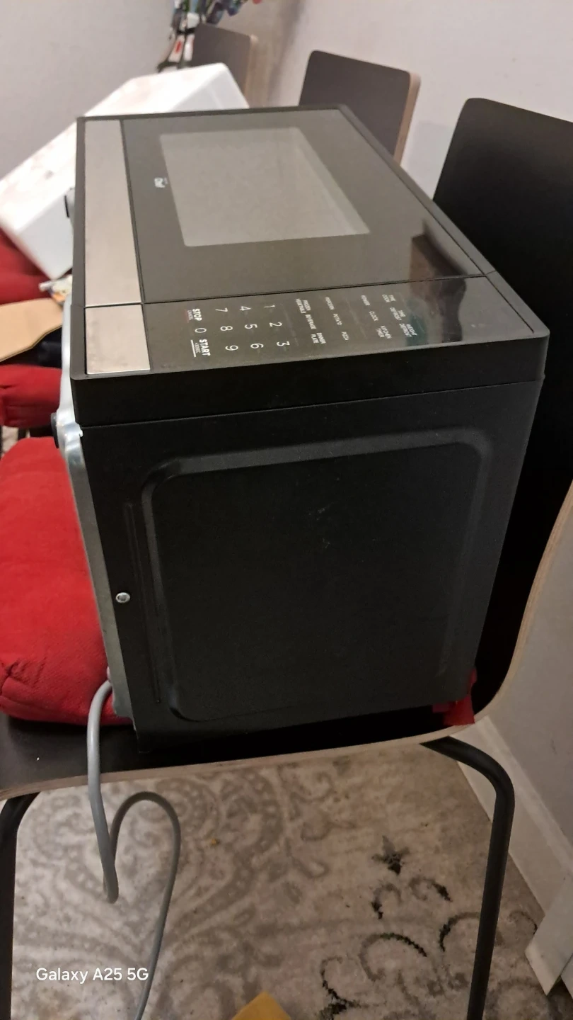 This is a black Master Chef microwave oven. It has a digital display and several pre-programmed settings for common foods. Works great for quick meals! delivery also available a bit charges depends upon distance I am moving to home country