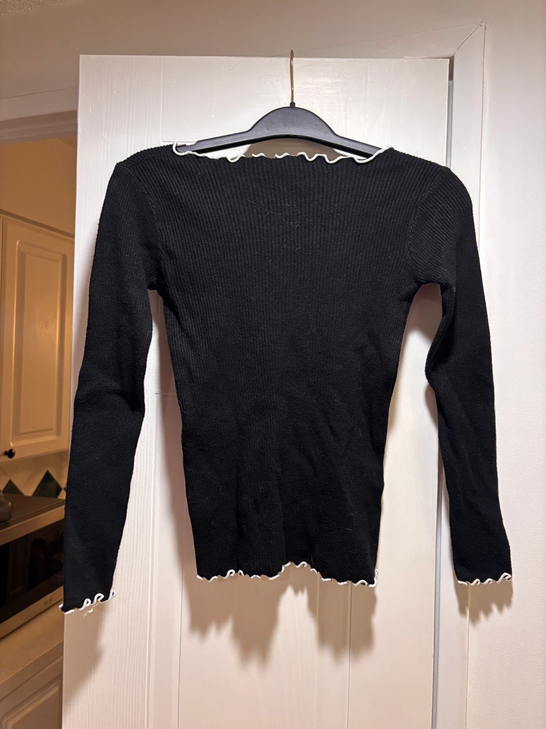 Black Ribbed Long Sleeve Top with White Trim (S)