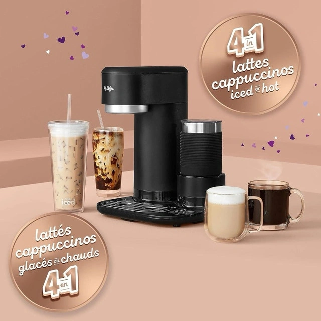 Create delicious lattes, cappuccinos, and more with this Mr. Coffee 4-in-1 single-serve latte maker! It's in new condition and has never been used. Features include: 4-in-1 functionality, single-serve brewing, hot and iced options, and an included milk frother. If the ad is up, the item is available. Pickup near Parkway Public School, Cambridge. Cash accepted.