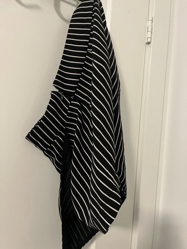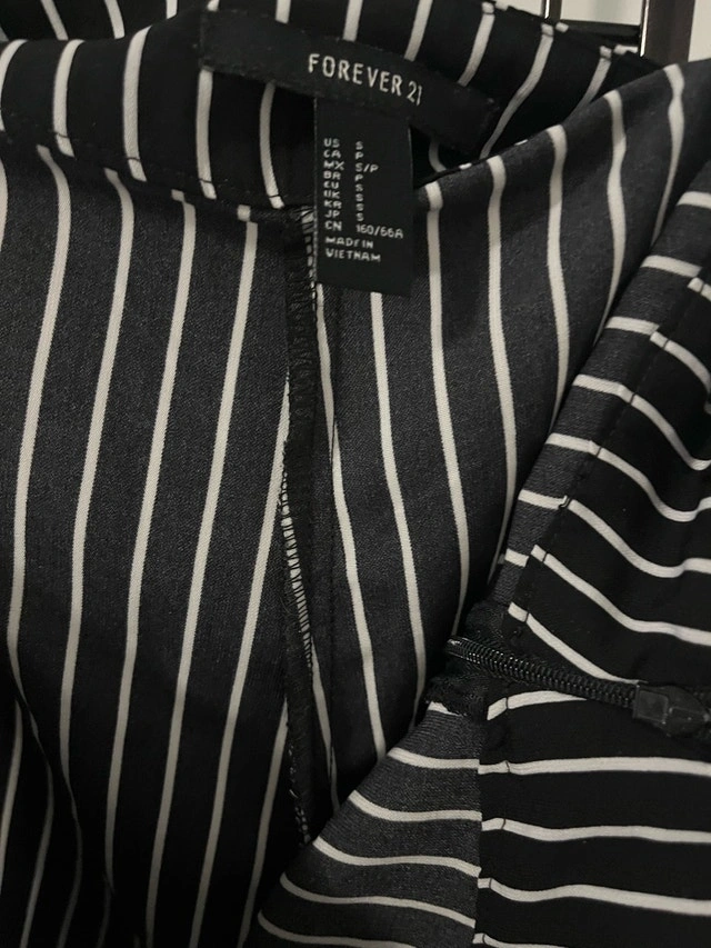 This is a black and white striped Forever 21 skirt, size small. This skirt is used, but in good condition.