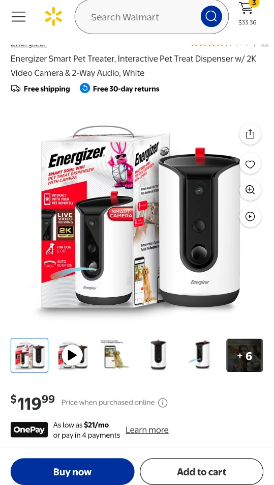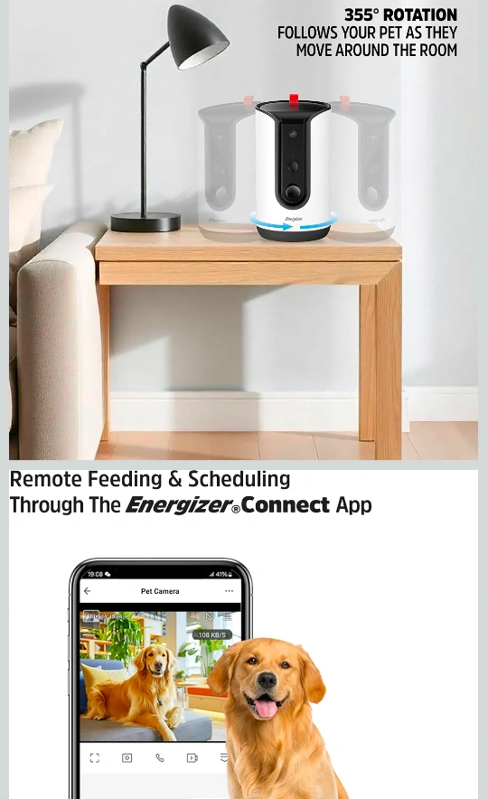 Energizer SMART Pet- Treat Dispenser with 2K Camera