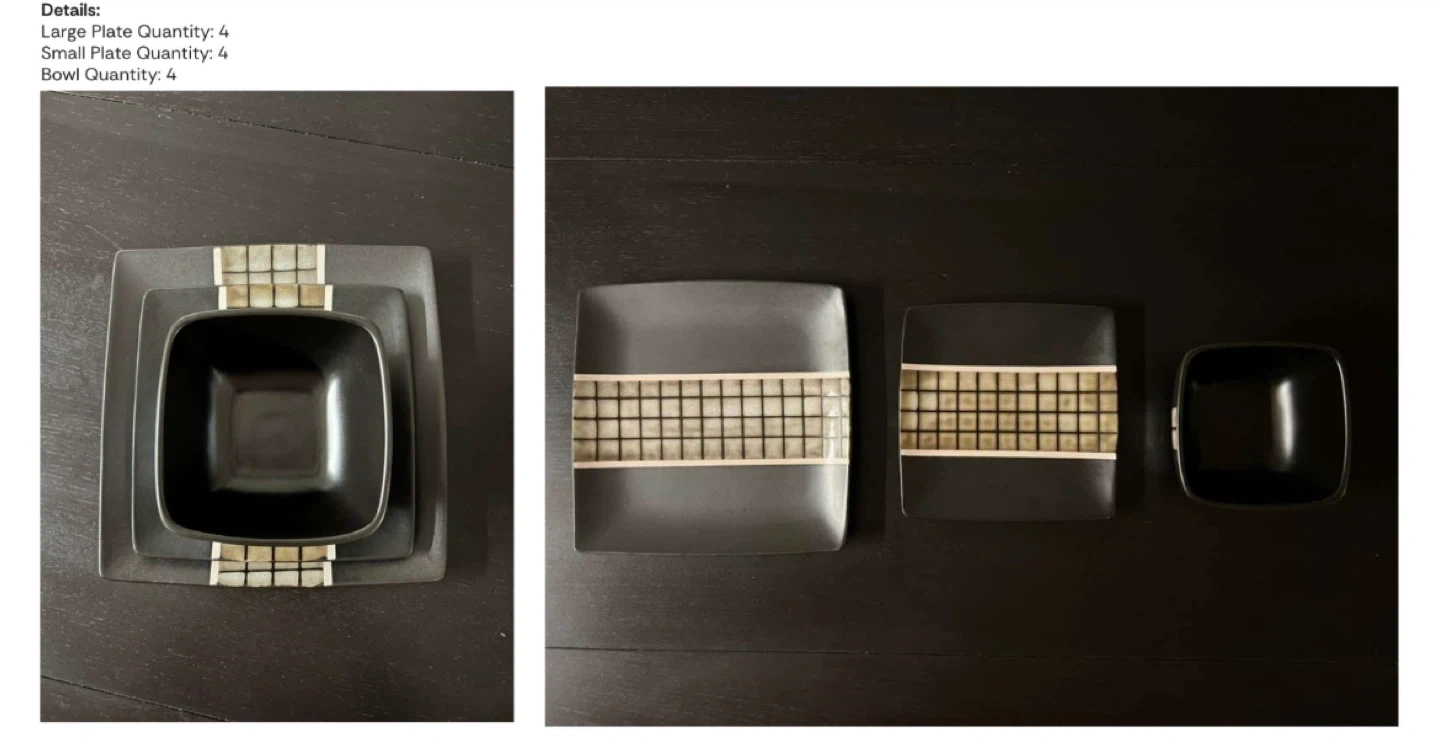 Selling a square dinnerware set that includes 4 large plates, 4 small plates, and 4 bowls! This set is perfect for a modern table setting