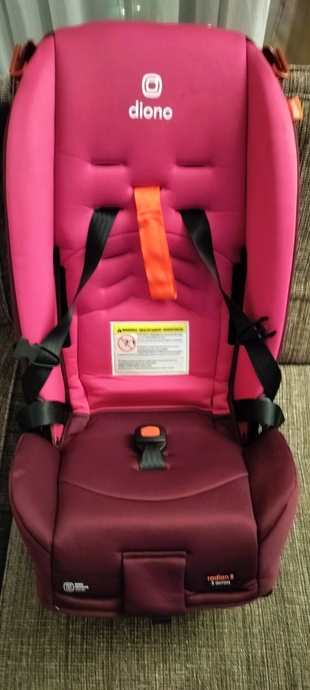 Selling a Diono Radian R 3 Across car seat. It's in great condition and ready for a new home. This car seat is known for its slim design, allowing three car seats to fit across in most vehicles. Perfect for growing families! 10 Years One Car Seat - from Birth to Booster (5 - 120 lb) it's all you will need. Grows with your child, ultimate protection on every road trip. 4 modes in 1 seat! Rear Facing for Longer - lovingly engineered to keep your child rear-facing up to 50 lb. Fits 3-Across - our famous slim-fit design with zero compromises to safety, space, or comfort. Mechanically engineered from reinforced automotive grade high-strength steel, our unique core shell shields and protects your child. High-quality ComfortPlus Memory Foam, always included. The original and only all-in-one convertible car seat that folds for travel or compact storage. FAA approved for airline use.