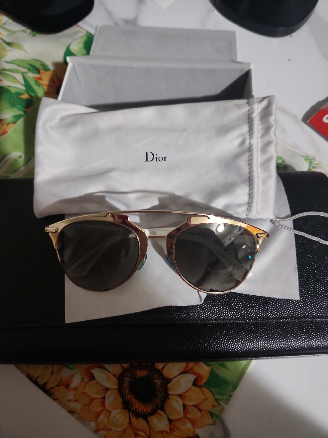 Selling a pair of Dior sunglasses with a gold frame. They come with the original Dior case and dust bag. Stylish and in great condition!