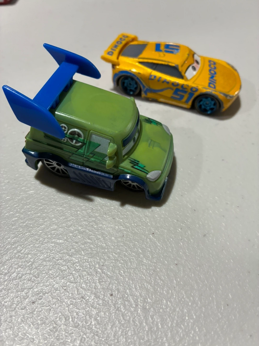 Disney Cars Dinoco Toy Cars - Set of 2 Selling a set of two Disney Cars diecast toy cars. One is Dinoco and the other is green with a blue spoiler. They are in good condition and ready for a new home! Pick up in Norridge Price $10