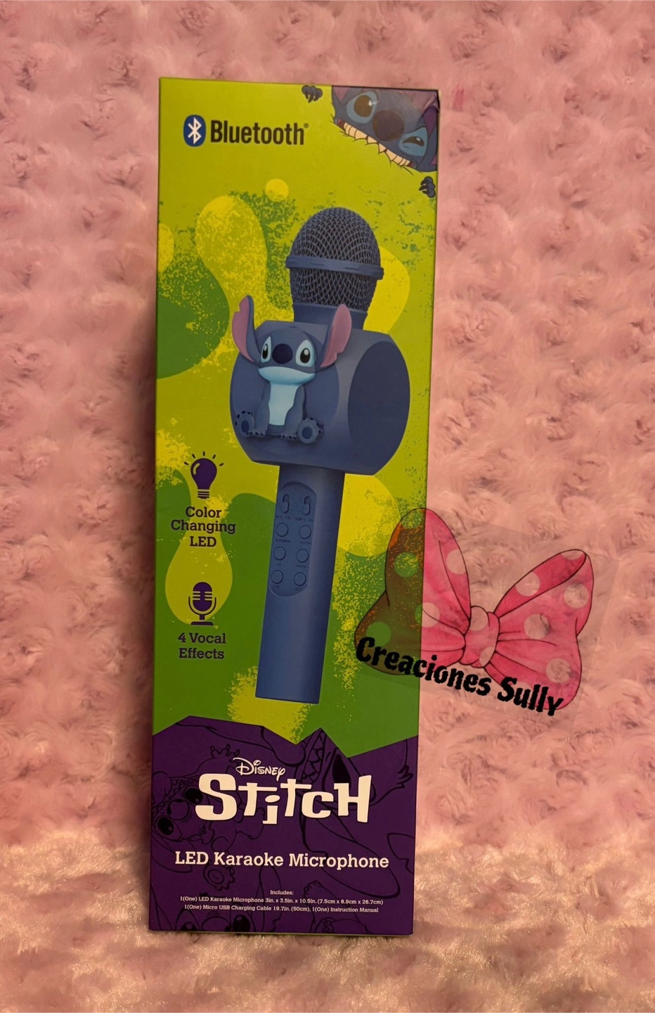 Selling a brand new Disney Stitch LED Karaoke Microphone! It comes in its original box and includes: - 1 LED Karaoke Microphone (3in x 3.5in x 10.5in) - 1 Micro USB Charging Cable (19.7in) - 1 Instruction Manual It features color-changing LEDs and 4 vocal effects for extra fun!