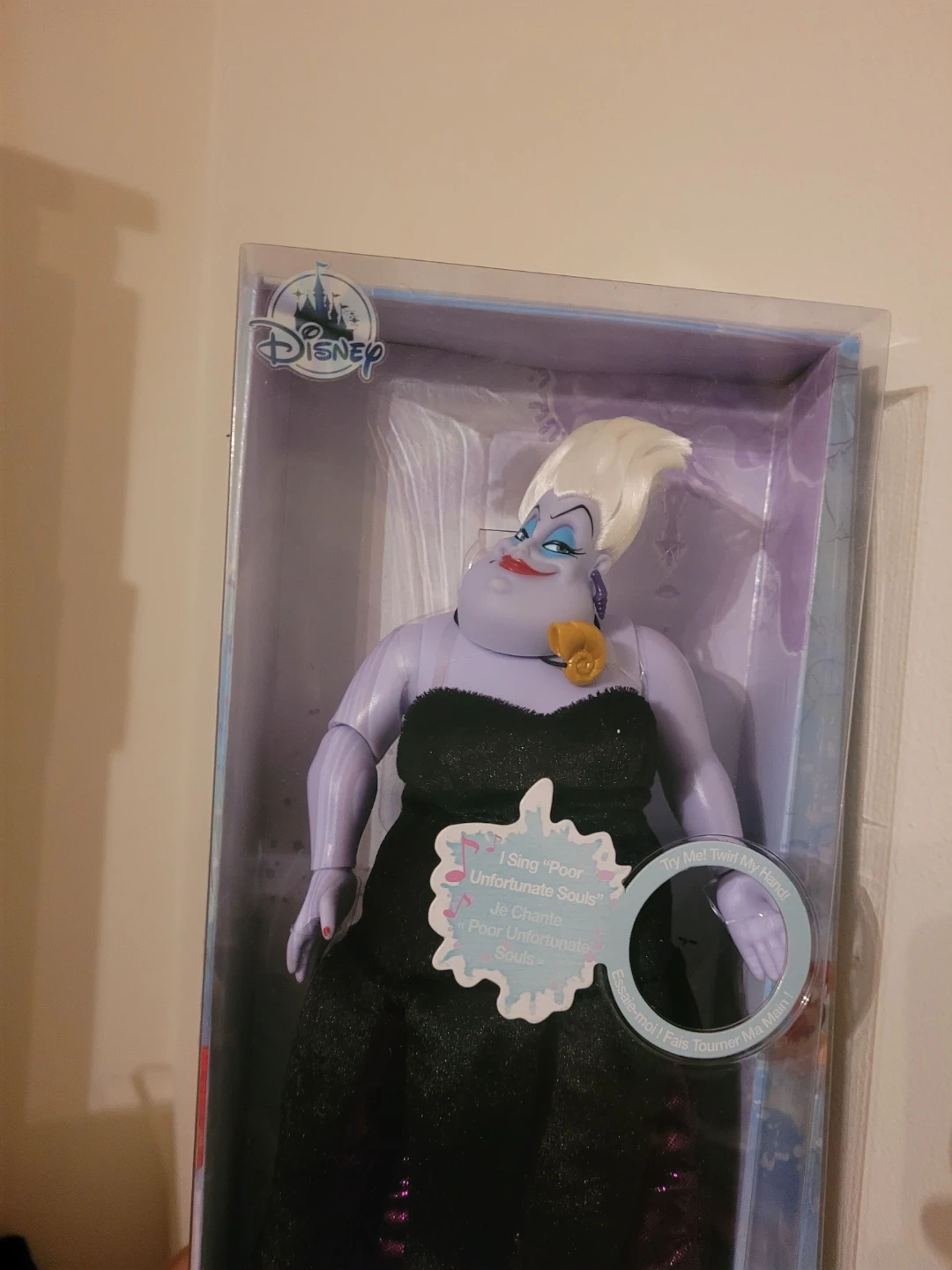 25Ursula from Disney's The Little Mermaid is ready to come home with you! This doll is brand new in its original packaging. She even sings "Poor Unfortunate Souls" when you press the button. A must-have for any Disney collector!