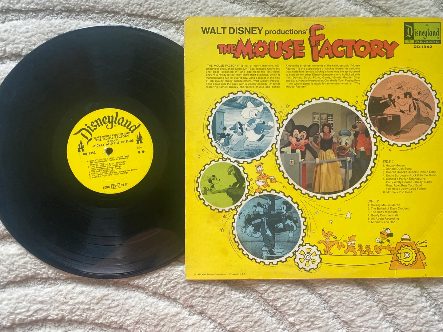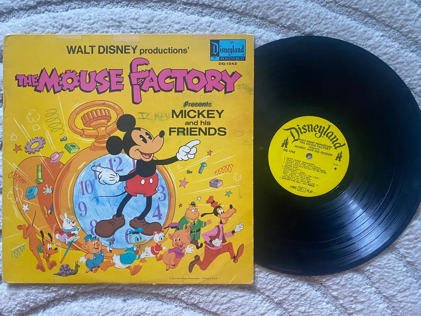 Selling a Disneyland vinyl record; Mickey and his friends! This is a Walt Disney Productions record from 1972 - The Mouse Factory. long play 33 1/3 record.