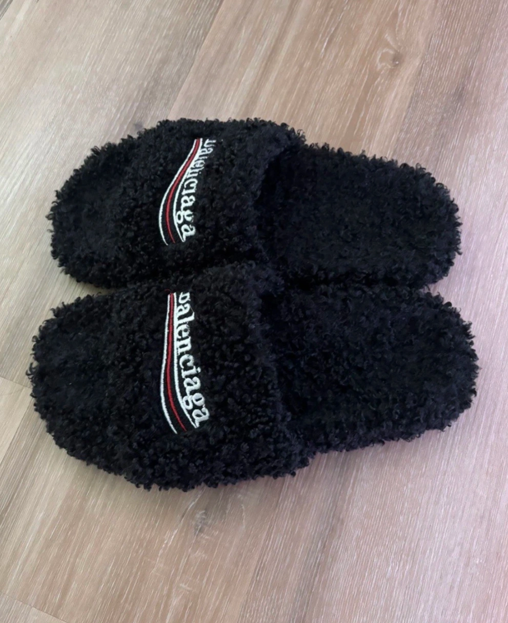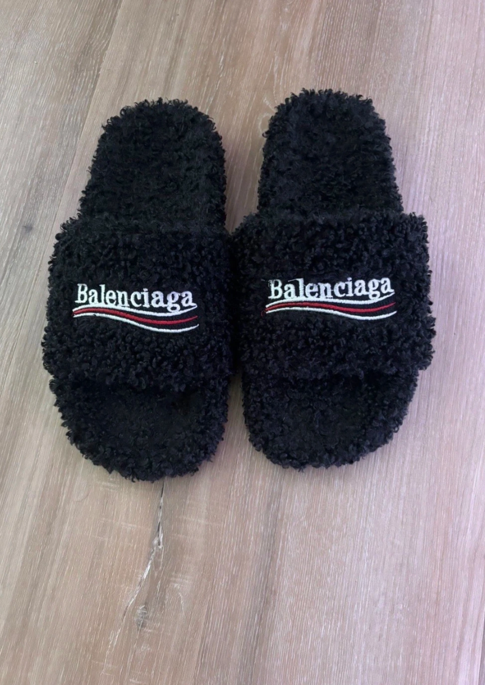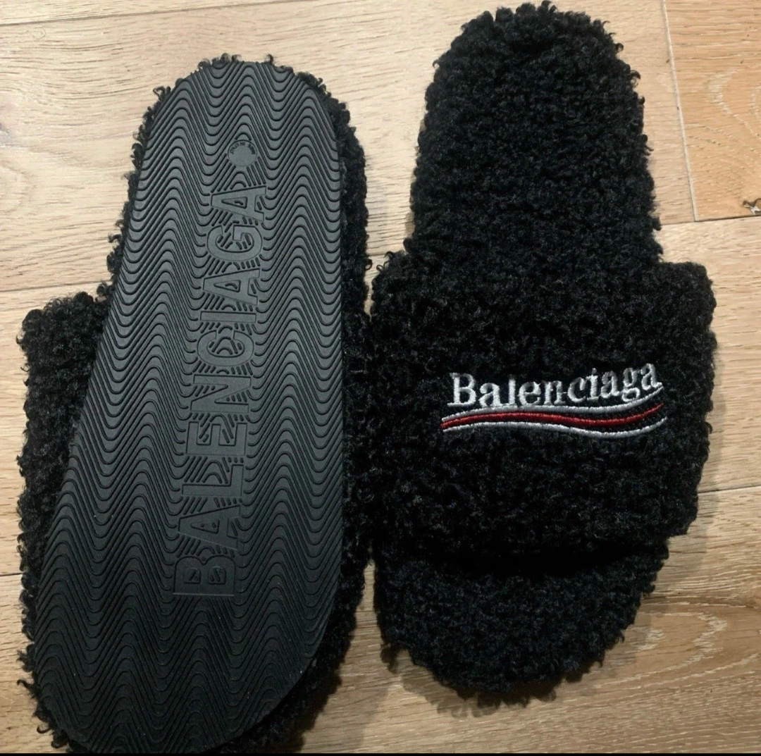The Balenciaga Black Fur Slides in unisex size 11/45 are a stylish and comfortable sandal option for men. Made with a luxurious fur upper material and featuring the signature Balenciaga logo accents, these slip-on slides are perfect for casual occasions during the summer and spring seasons. Handmade in Italy, these sandals offer a slip-on style with standard shoe width, making them a versatile addition to any wardrobe.