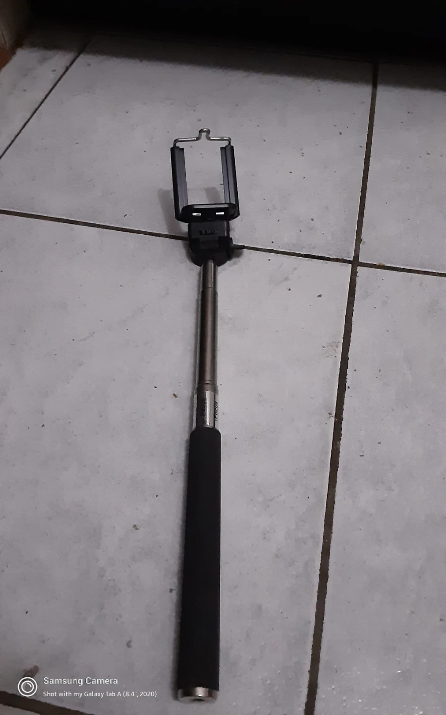 This extendable selfie stick features a comfortable black grip and a metal pole for durability. It's designed to securely hold most smartphones, allowing for wider shots and easier group photos. Perfect for travel and capturing memories on the go!