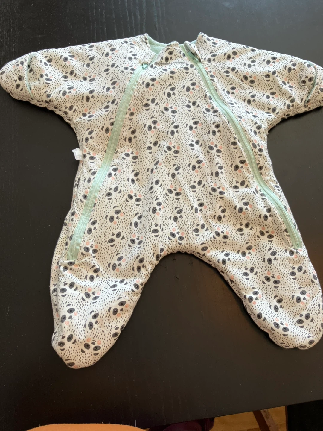 Cozy baby snowsuit/bunting suit with a cute panda print. It's made of soft material, perfect for keeping little ones warm. Features a full-length zipper for easy changes.