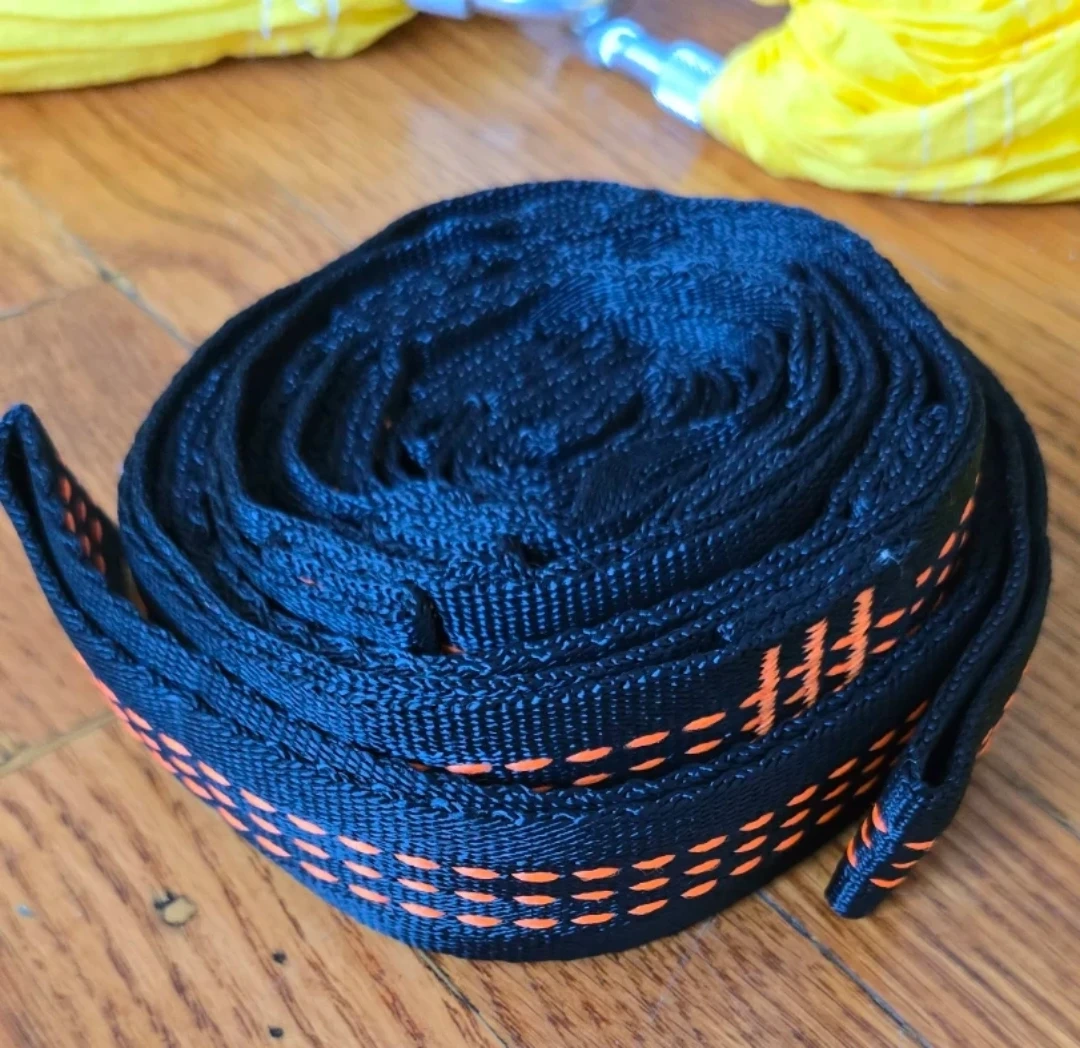 2 Multiloop daisy chains use as stretch straps and height adjuster for wrapping around trees or Jungle gyms to hang in the park whatever you want to hang it to they are heavy duty and will last forever 41" with 6 loops and adjustable heights