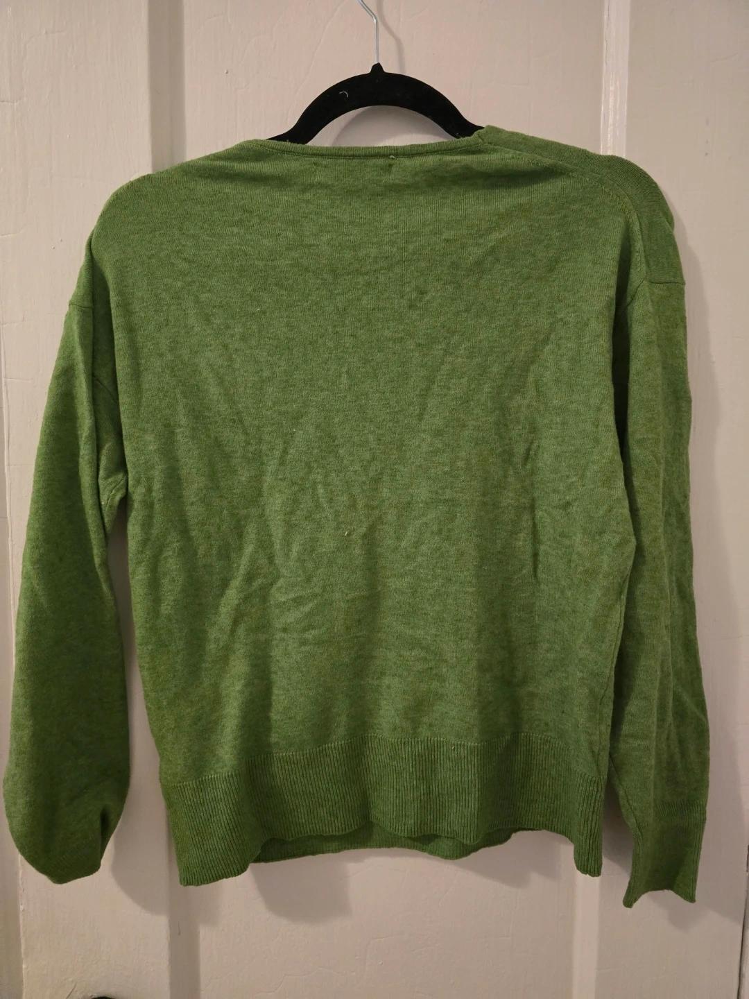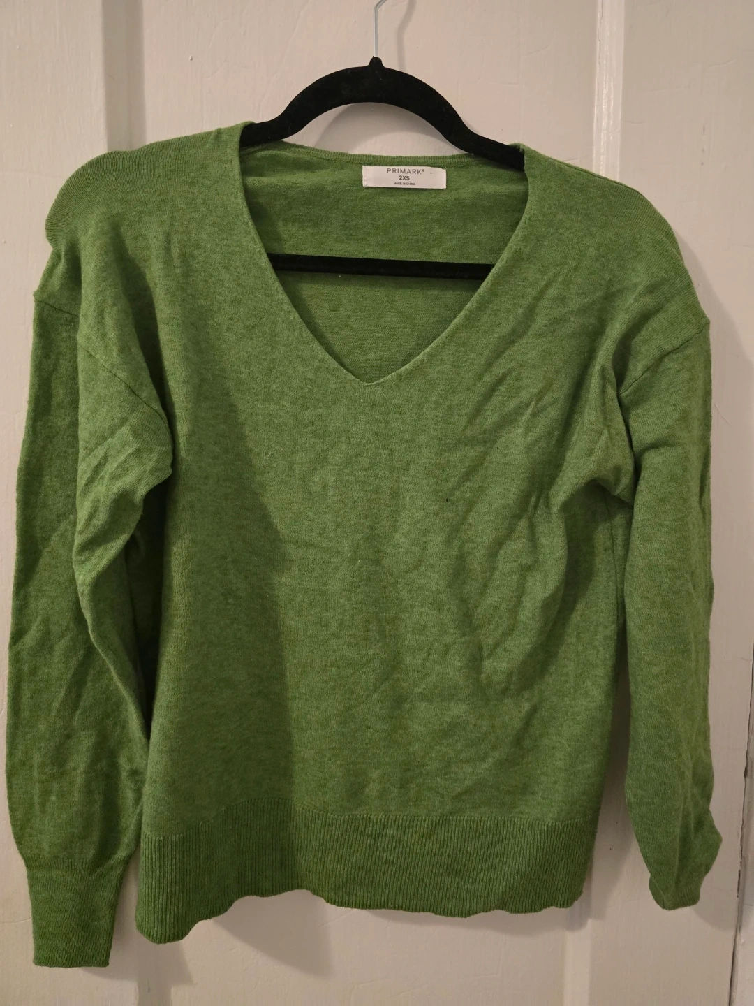 A comfortable green V-neck sweater from Primark. It's made with a soft material, perfect for everyday wear. The classic V-neck design makes it easy to layer.