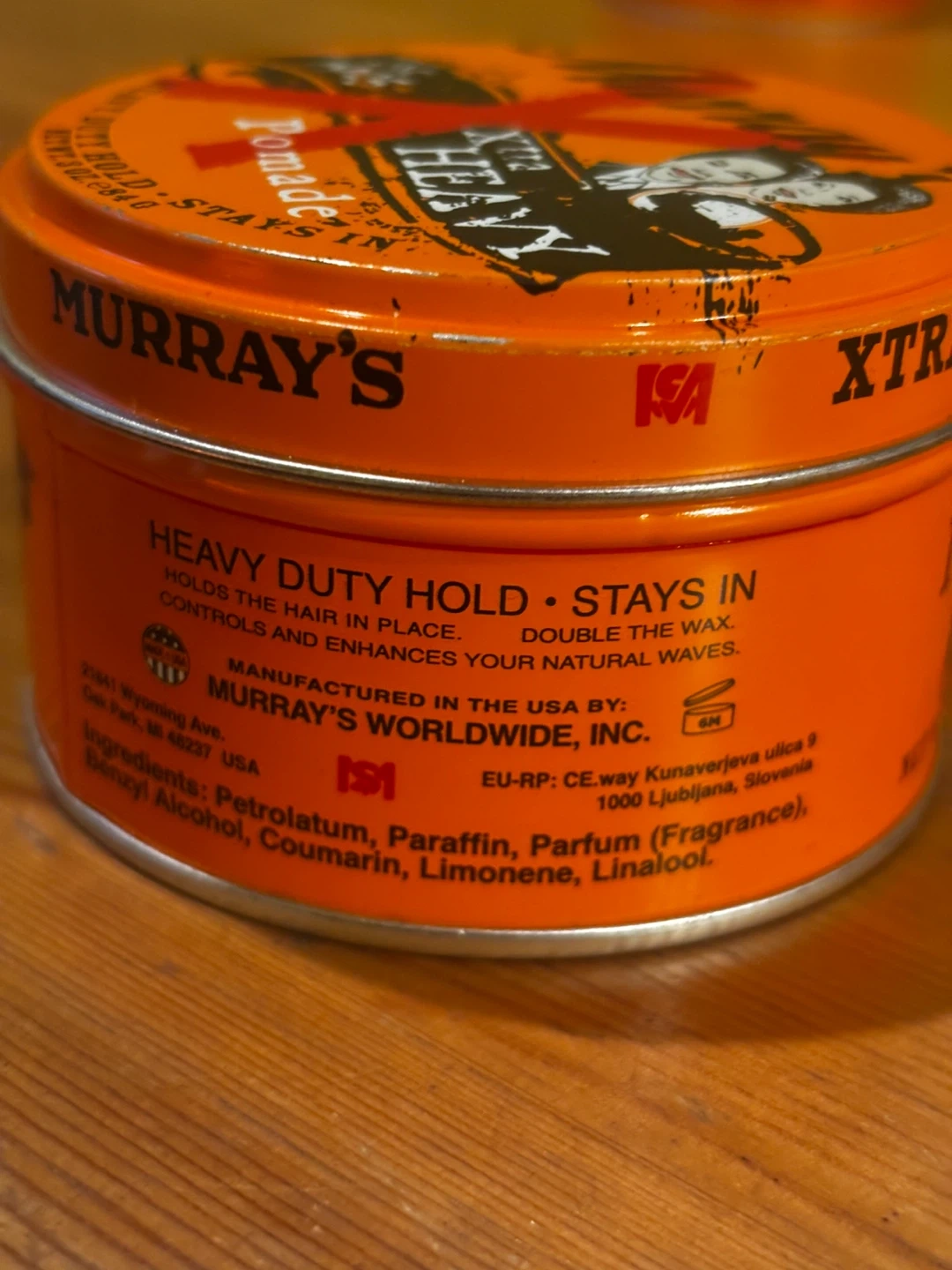 This is Murray's Xtra Heavy Duty Hold Pomade. It's designed to keep hair in place and enhance natural waves. The tin contains 3 oz of product.