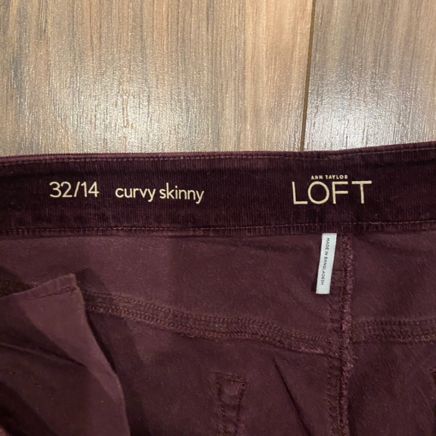 Burgundy corduroy pants. Size 14. Curvy skinny fit. Excellent condition.