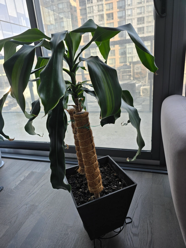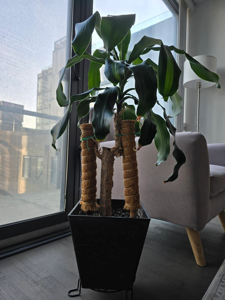 Selling a healthy corn plant in a sleek black pot. It's a great way to add some greenery to your space!
