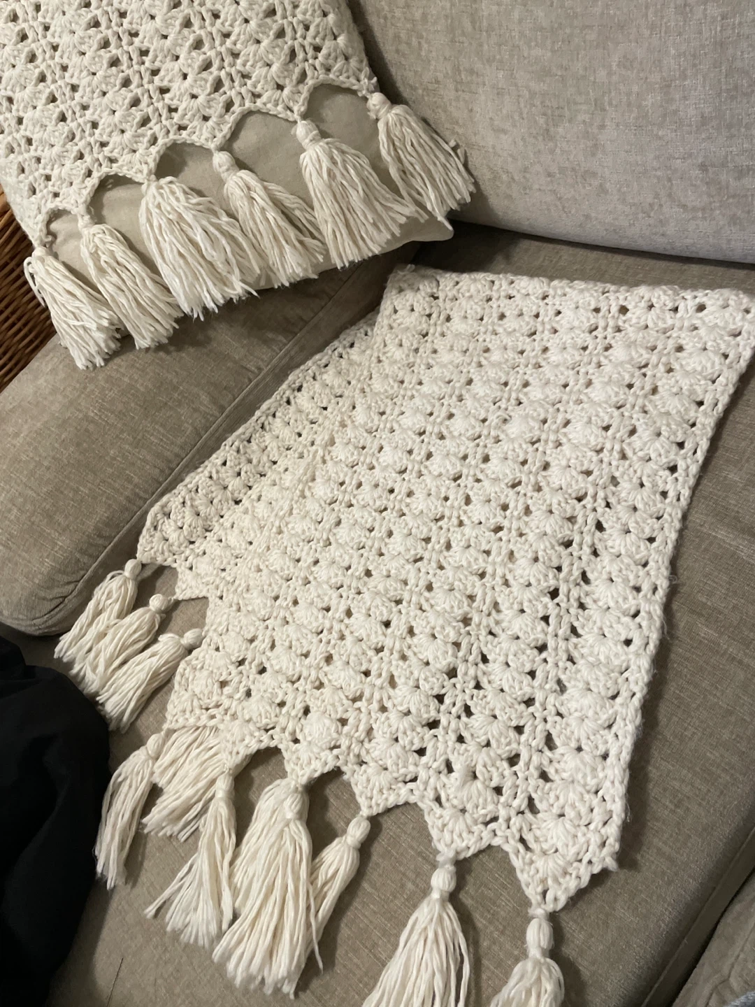Selling a beautiful handmade crochet 2 pillow cover set. The intricate crochet work and tassel details add a cozy and stylish touch to any room. Perfect for adding warmth and texture to your home decor!