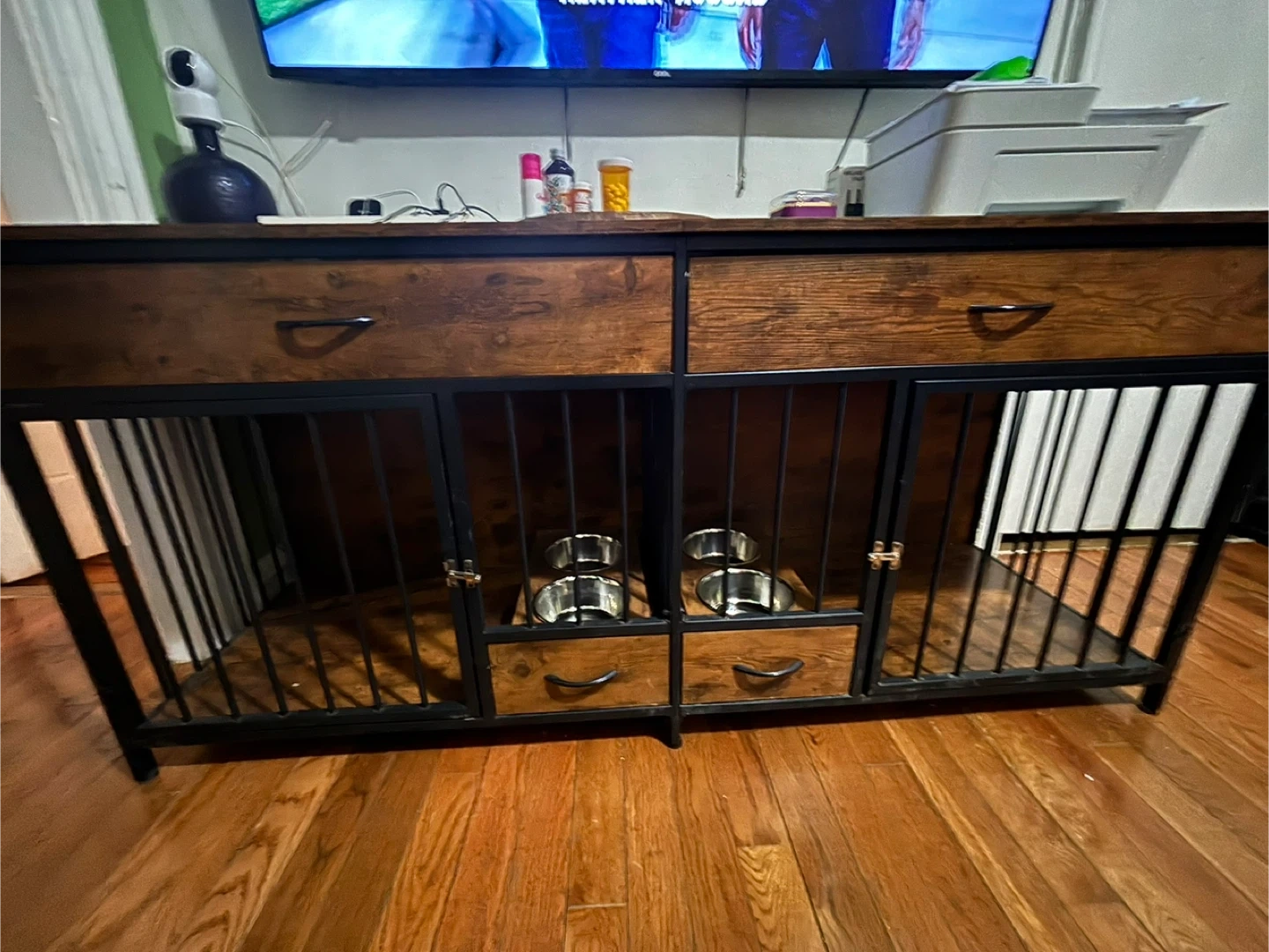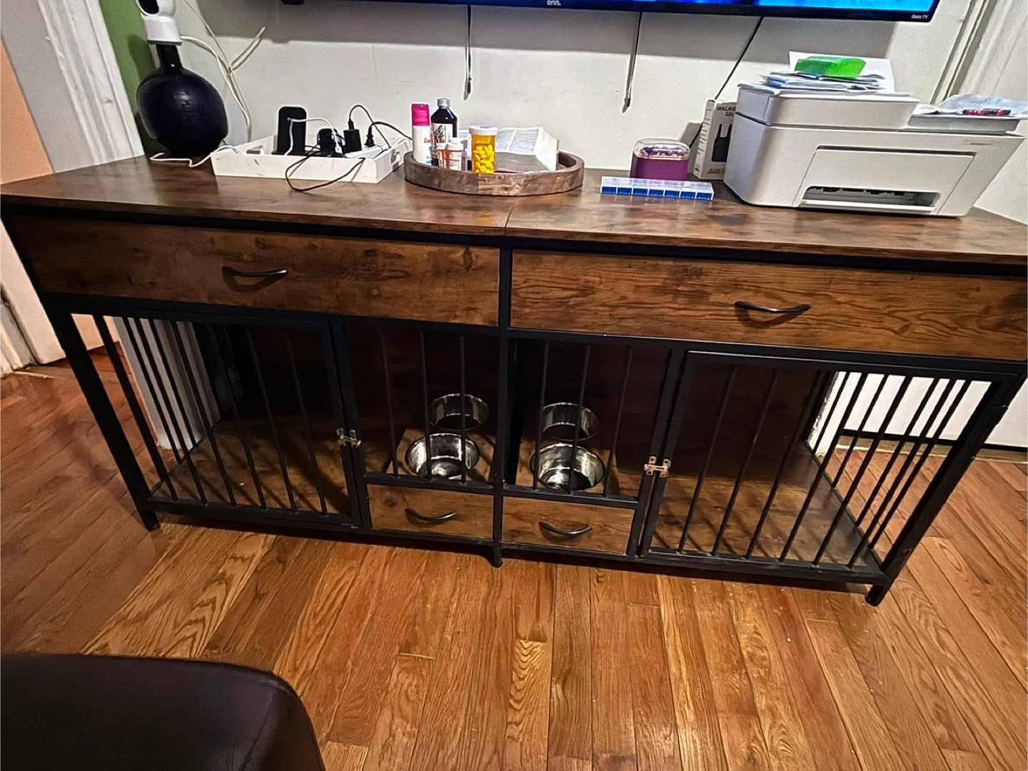 This is a dog crate that doubles as furniture! It's great for providing a safe space for your furry friend while also blending in with your home decor