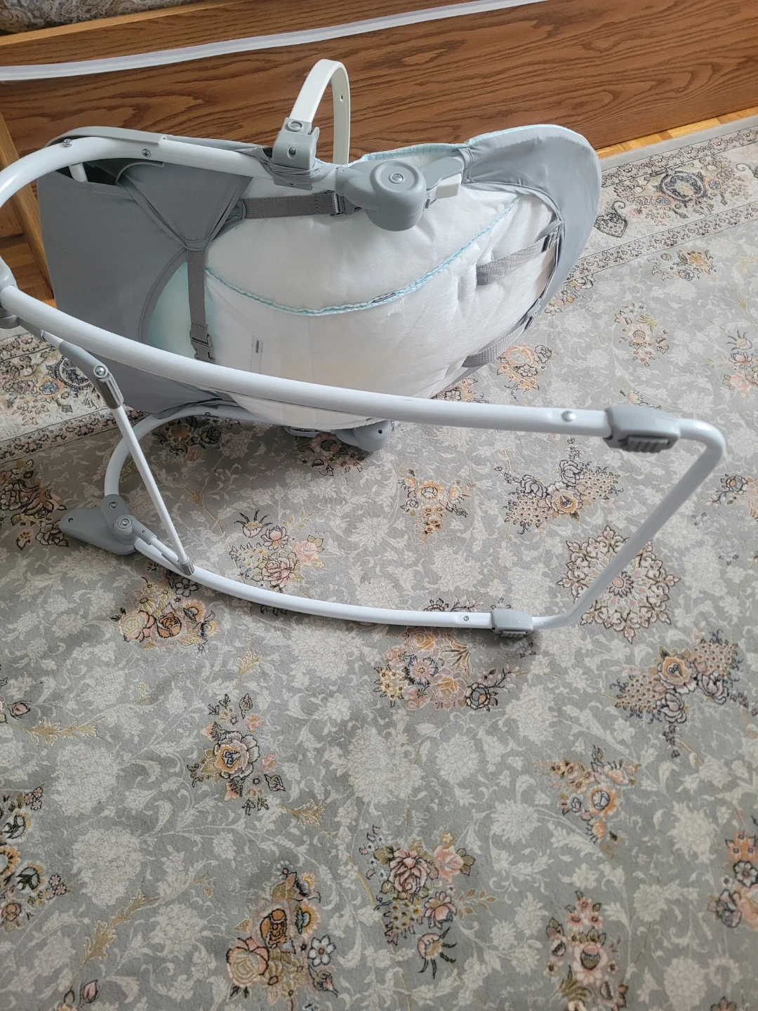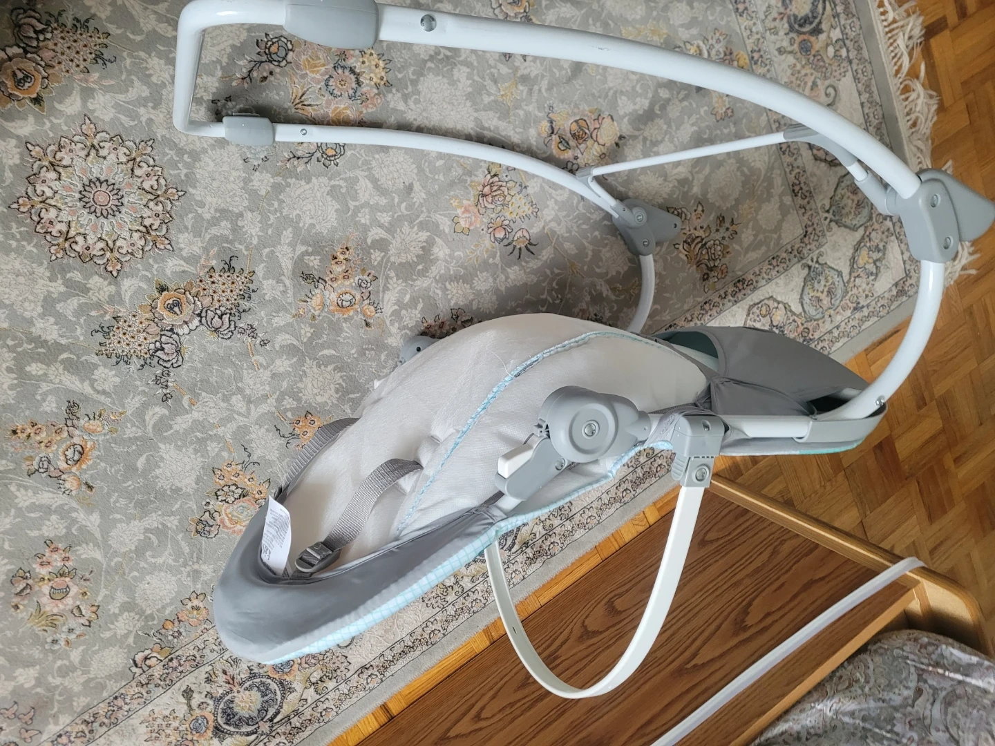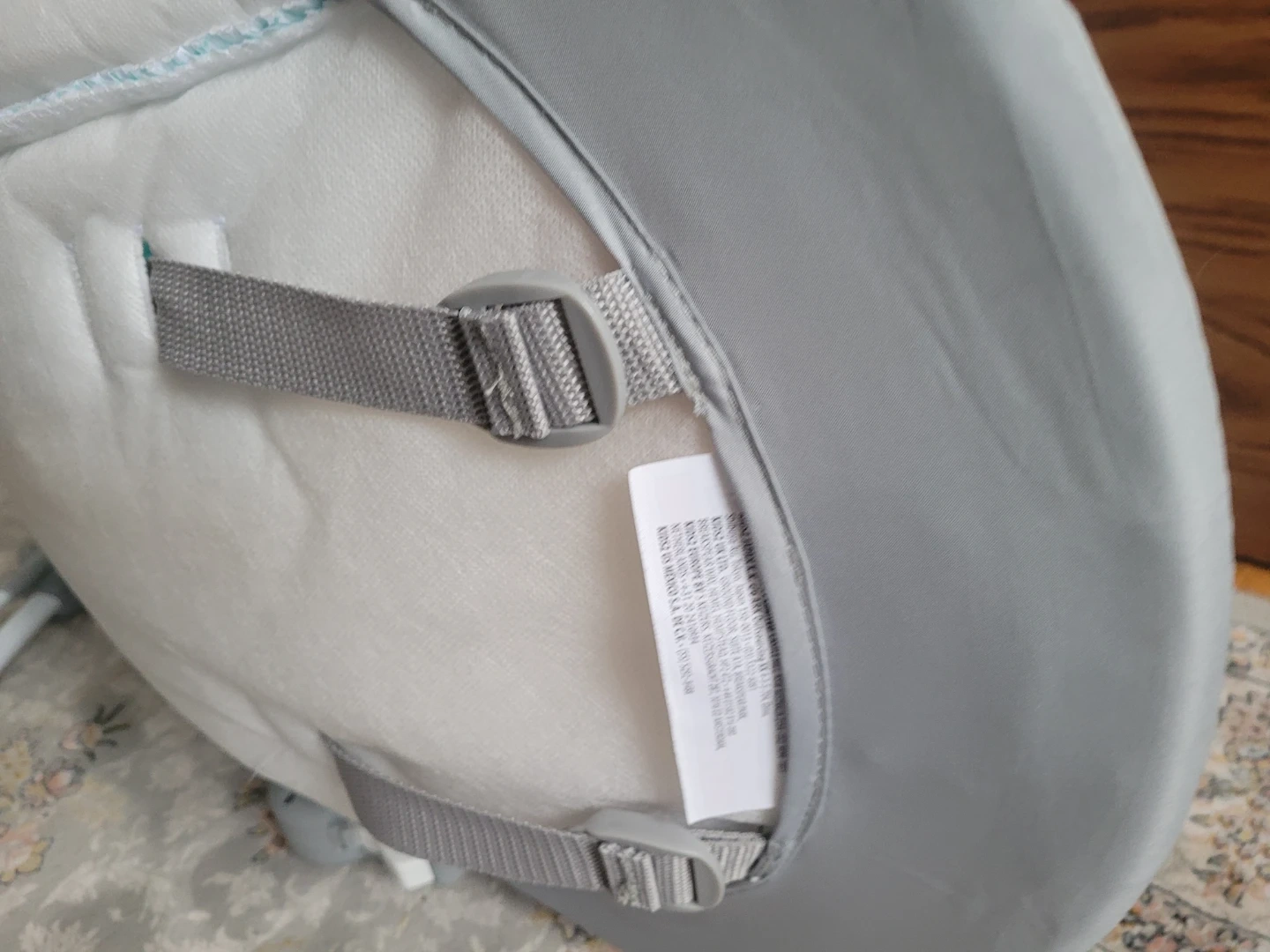 A gentle baby bouncer with a fun giraffe and monkey theme. It's designed with a comfortable seat and secure harness. This bouncer provides a cozy spot for your little one to relax. Perfect for babies who need a calm place to sit.its almost new.